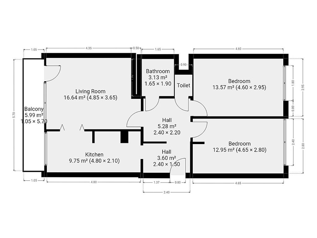 Skládá se z centrální chodby, dvou samostatných pokojů, obývacího pokoje se vstupem na velmi prostornou, zasklenou lodžii.