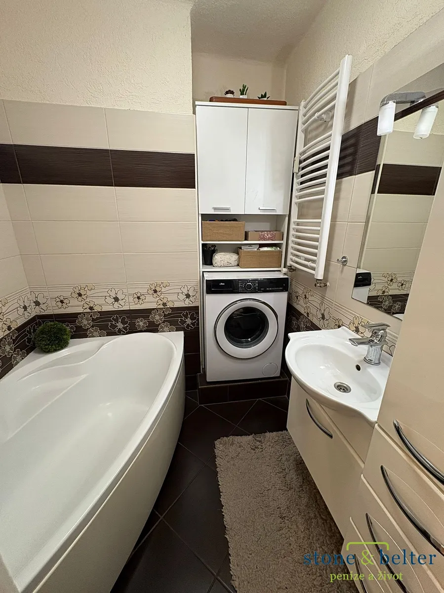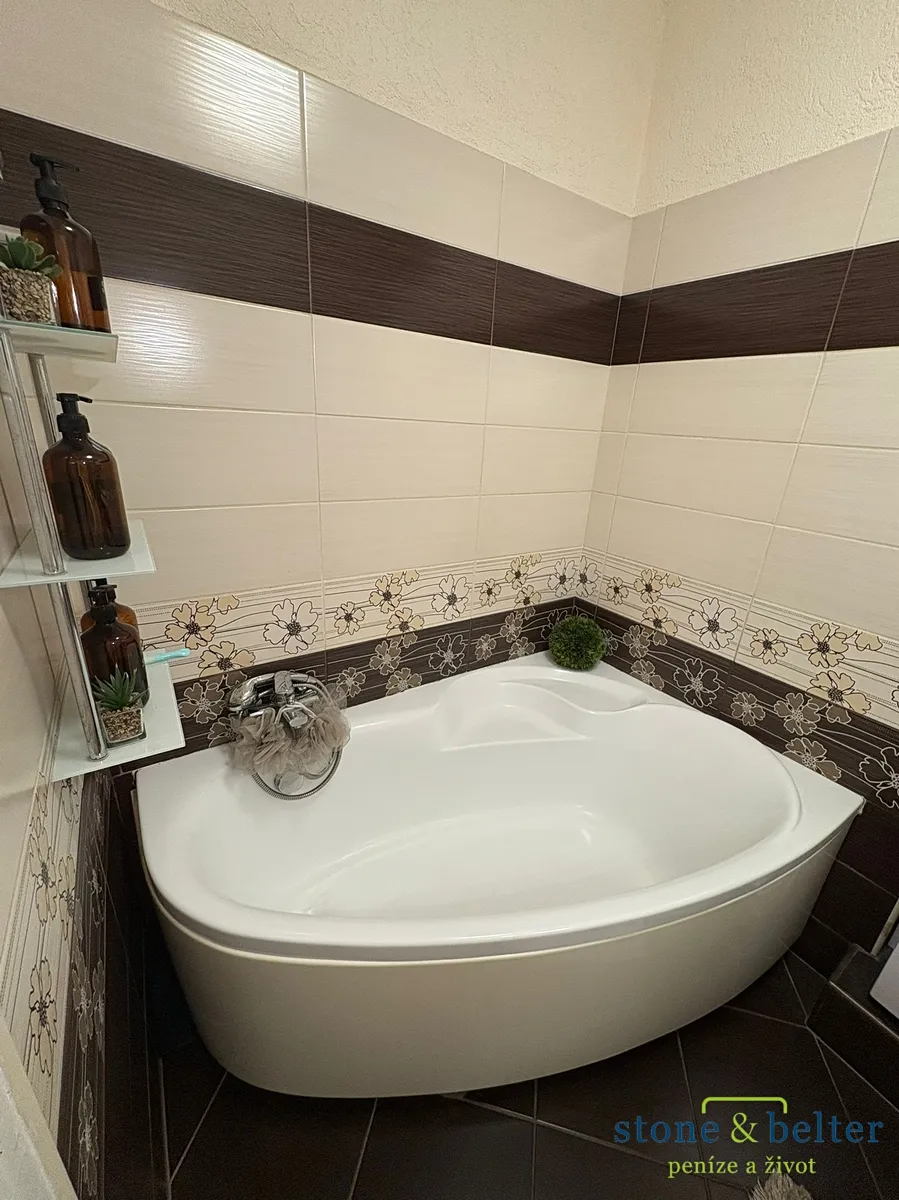 • Vkusně zařízená koupelna s vanou. Toaleta je oddělená.
