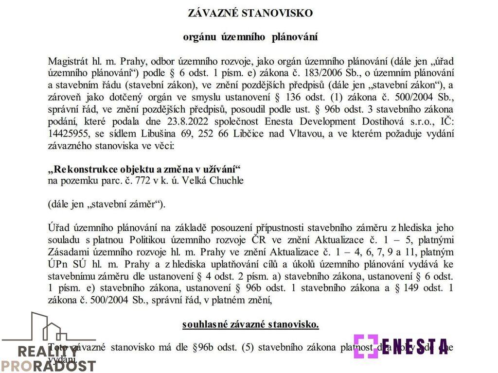 - Dle souhlasného stanoviska odboru územního plánování Magistrátu hl. m. Prahy možnost rekonstrukce na bytový dům s 10 bytovými jednotkami.