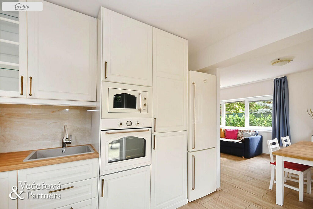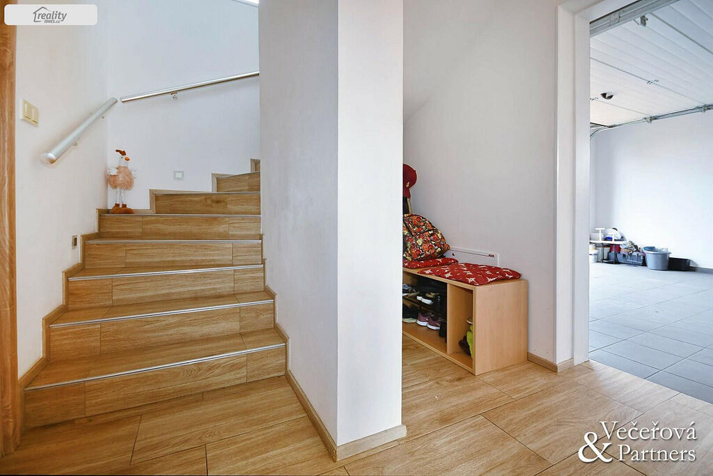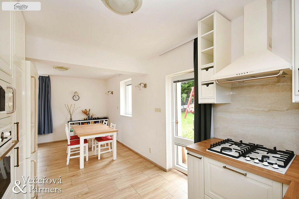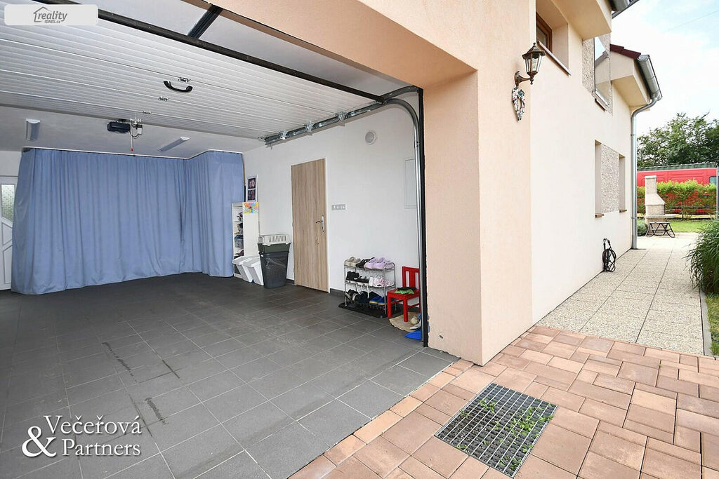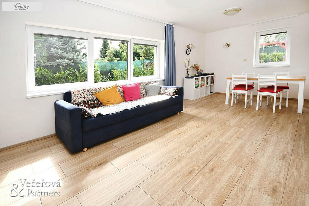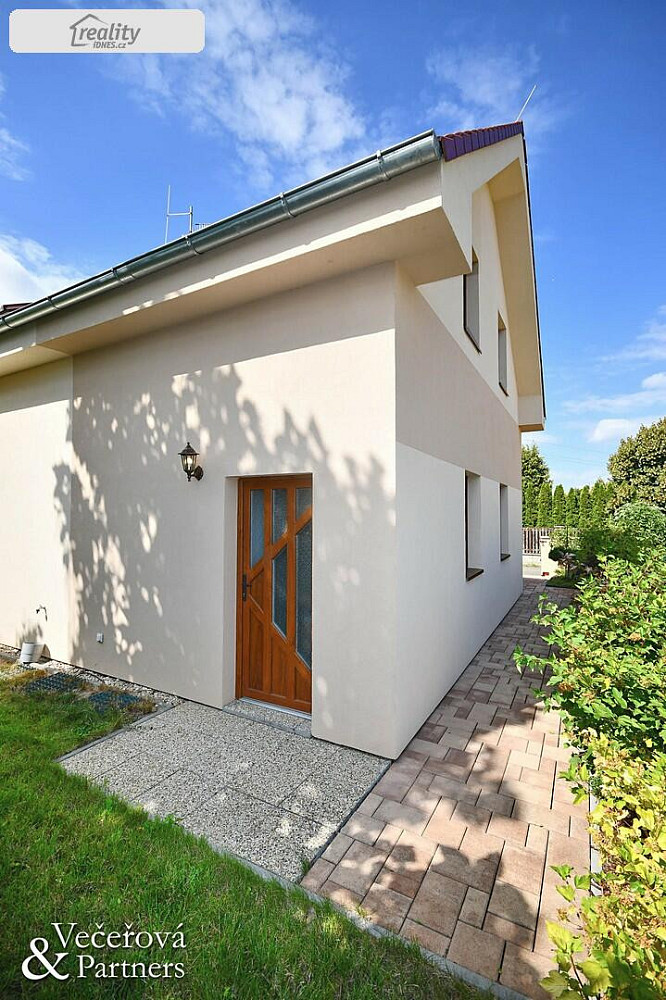 Dům disponuje čtyřmi prostornými pokoji, které nabízejí dostatek pohodlí pro celou rodinu. Horní velmi prostorný pokoj může být rozdělen na dva běžné pokoje. Výhodou je garáž s kapacitou pro dvě auta, a navíc venkovní parkovací místo před garáží. Prostorná terasa z boku domu na straně bez okolní zástavby je ideální pro venkovní posezení. Udržovaná zahrada nabízí naprosté soukromí.