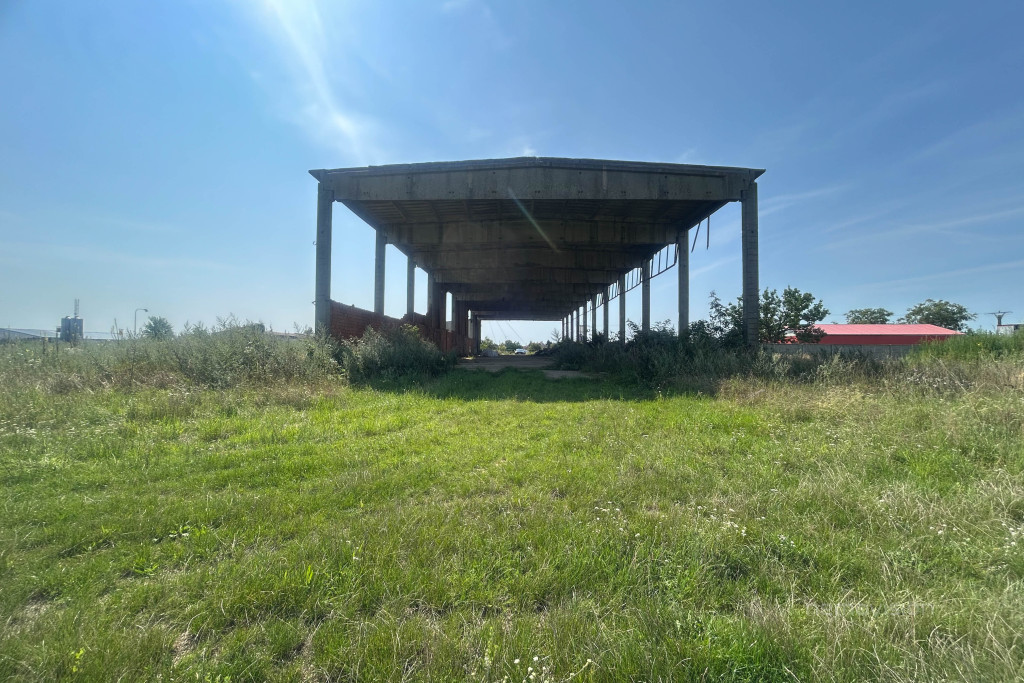Železobetonovou skladovací halu s částečným opláštěním (957 m²)