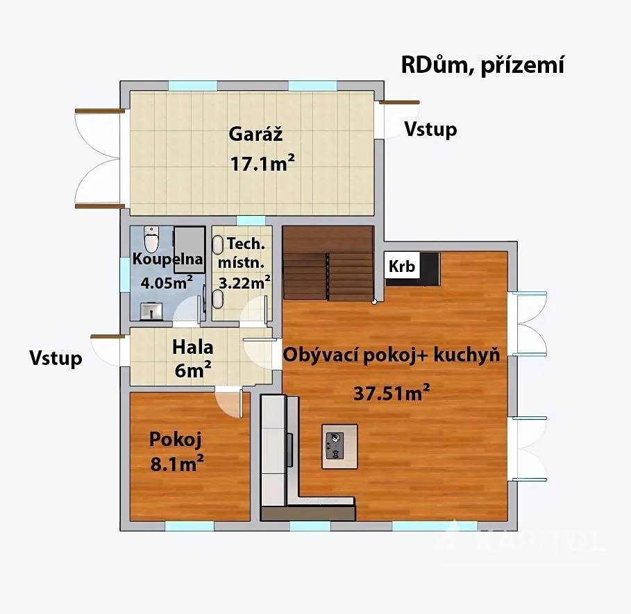 • Dům je rozdělen na přízemí a 1.patro, poskytující dostatek prostoru pro celou rodinu.