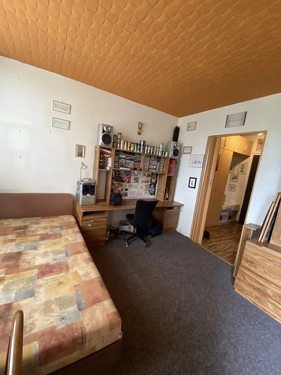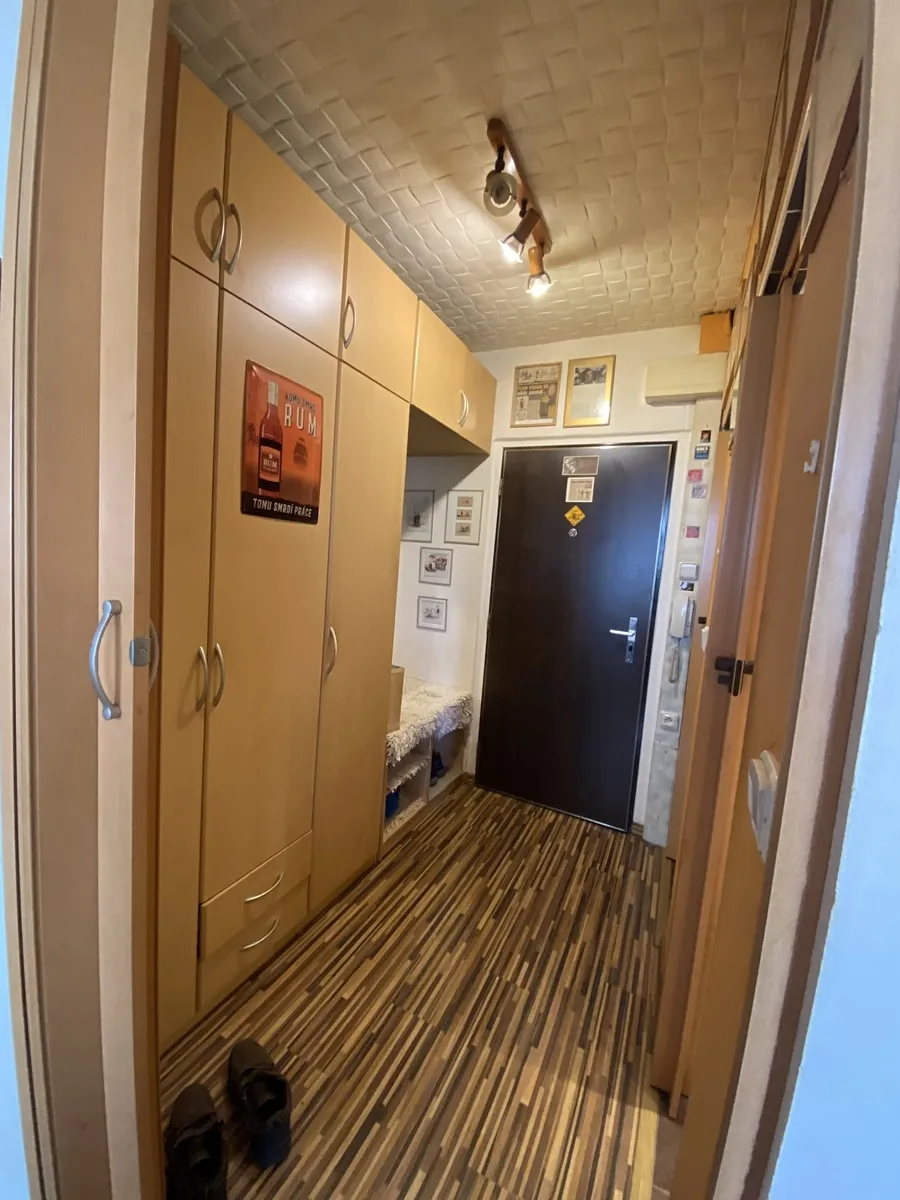 Dispozice a vybavení: Byt 1+kk se nachází ve 3. podlaží z 8 a místnosti jsou orientované na východ. V domě je výtah. Kuchyňské vybavení tvoří kuchyňská linka. V koupelně se nachází rohová vana a umyvadlo. WC je samostatné. Podlahové krytiny jsou v chodbě a kuchyni plovoucí podlahy laminátové, v pokoji je koberec a koupelna a WC mají keramickou dlažbu. V bytě je také vestavěná skříň.