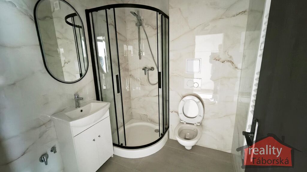 V obývacím pokoji s kuchyňským koutem je laminátová plovoucí podlaha, v koupelně keramická dlažba. V koupelně je sprchový kout, umyvadlo, toaleta a prostor na pračku s připravenými vývody na vodu a odpad. Provedení ve standardu, není potřeba dokončovacích prací. V bytě jsou plastová tříkomorová okna a bezpečnostní vstupní dveře, které jsou uvnitř foliované. Vchodové dveře do domu mají bezpečnostní zámek ovladatelný z mobilního telefonu.