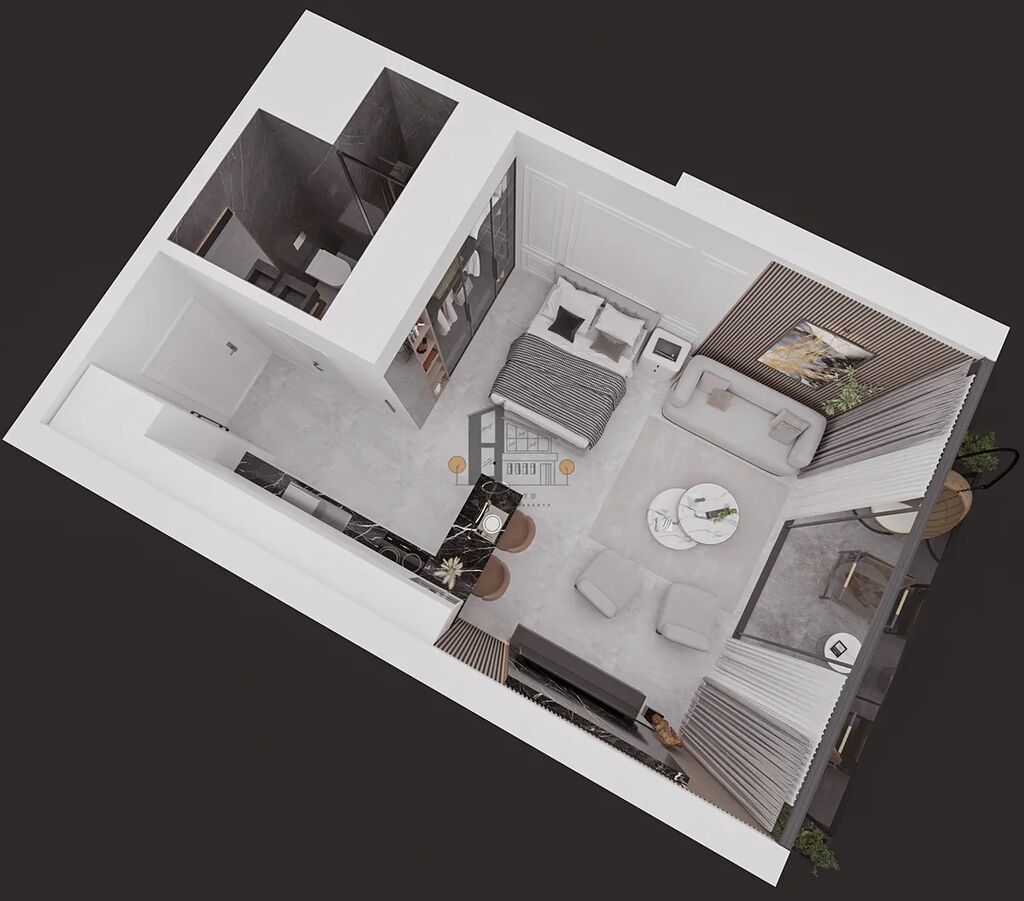 Studio – 55 / 47 m² (hrubá podlahová plocha/čistá podlahová plocha)