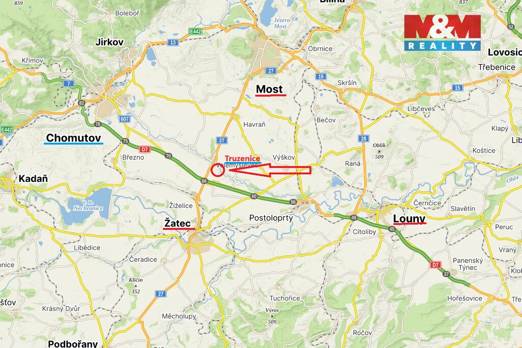 Prodej patrového dvougeneračního rodinného domu s obytnou plochou 400 m2, v malé obci Truzenice, Velemyšleves, cca 20 km od Loun, 10 km od Žatce, 10 km od Mostu a 15 km od Chomutova, s pozemkem o výměře 1291 m². Dům částečně podsklepen. Okna plastová, nová střecha. K domu náleží vedlejší stavba, též s novou střechou, která slouží jako hospodářská část. Jsou zde chlévy a dílna. Obytný dům postavený v roce 1926 je zděný z kamene, v 1.NP se nachází prostorné zádveří, chodba, schodiště, kuchyně, jídelna, obývací pokoj, ložnice, dva menší pokoje, koupelna s vanou a samostatné WC. Ve 2.NP se nachází kuchyně, komora, obývací pokoj, ložnice, dětský pokoj, koupelna s vanou, samostatné WC. Topení ústřední s radiátory, automatický kotel na pevná paliva. Každé patro má svůj kotel. Pitná voda je připojena z vodovodního řadu. S financováním Vám pomůže naše Hypoteční centrum.