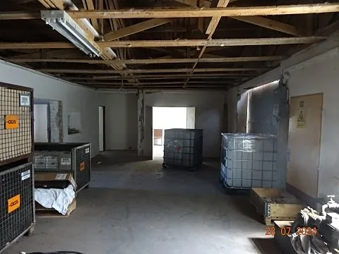 Jedná se o halu pro výrobu a skladování, která je nyní využívána zámečnickou firmou. Nepodsklepená, výrobní prostor a zázemí, plechová vrata, podlaha betonová s potěrem, vytápění plynový kotel a radiátory. TUV průtokový ohřívač. Zastavěná plocha načítaná je stanovená podle i-katastru na 400 m2.