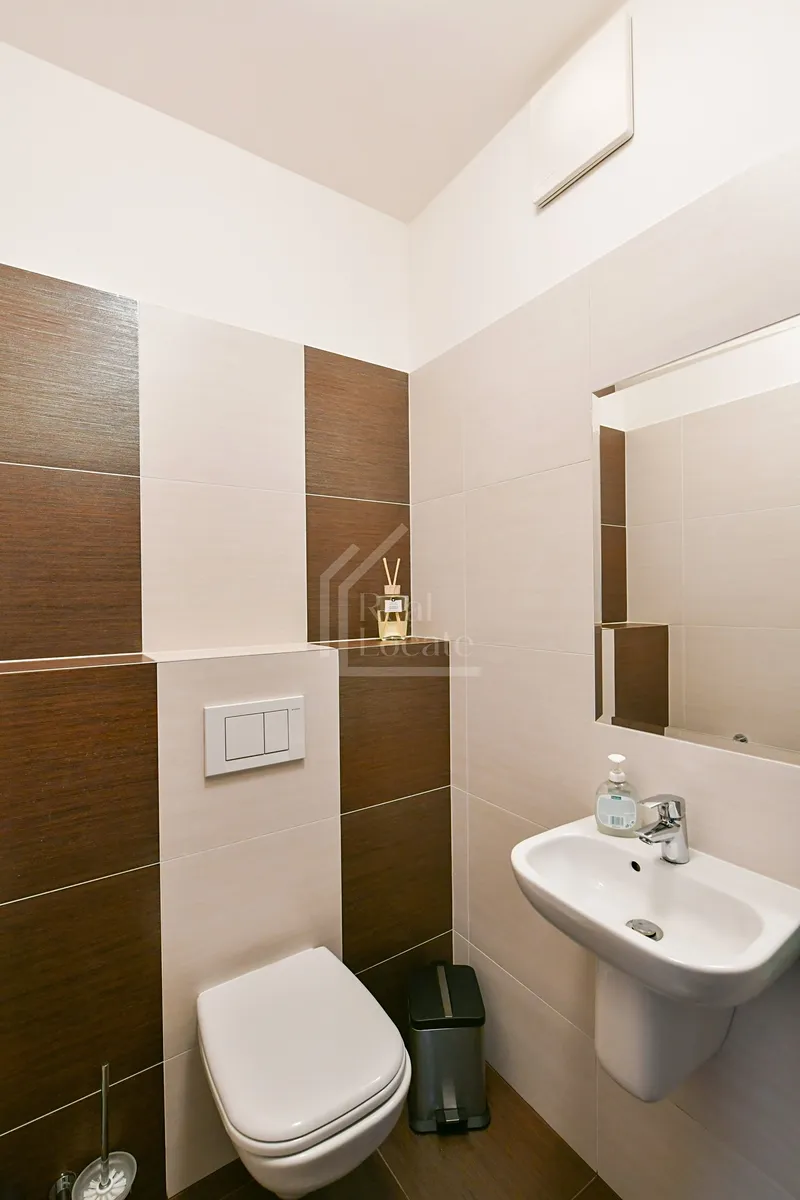 Součástí vybavení je klimatizace v ložnici. V ceně nájemného je zahrnuto 1 garážové parkovací stání.