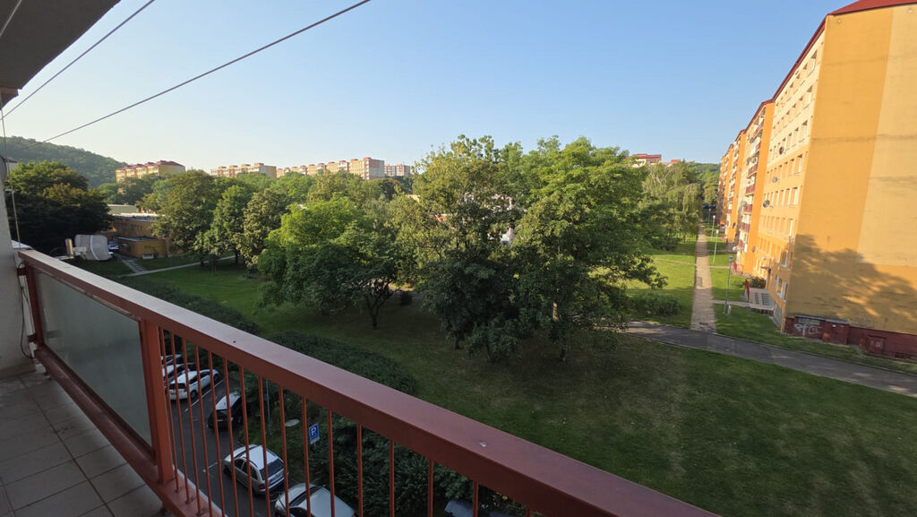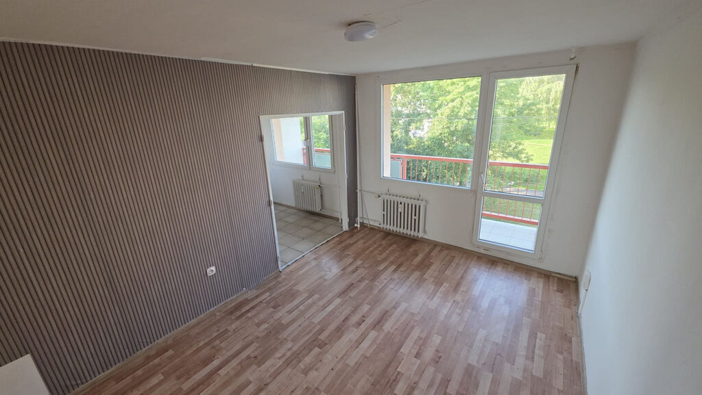 Dispozice: obývací pokoj, dvě samostatné ložnice, kuchyně, koupelna spojená s toaletou a lodžie s příjemným výhledem do zeleně.