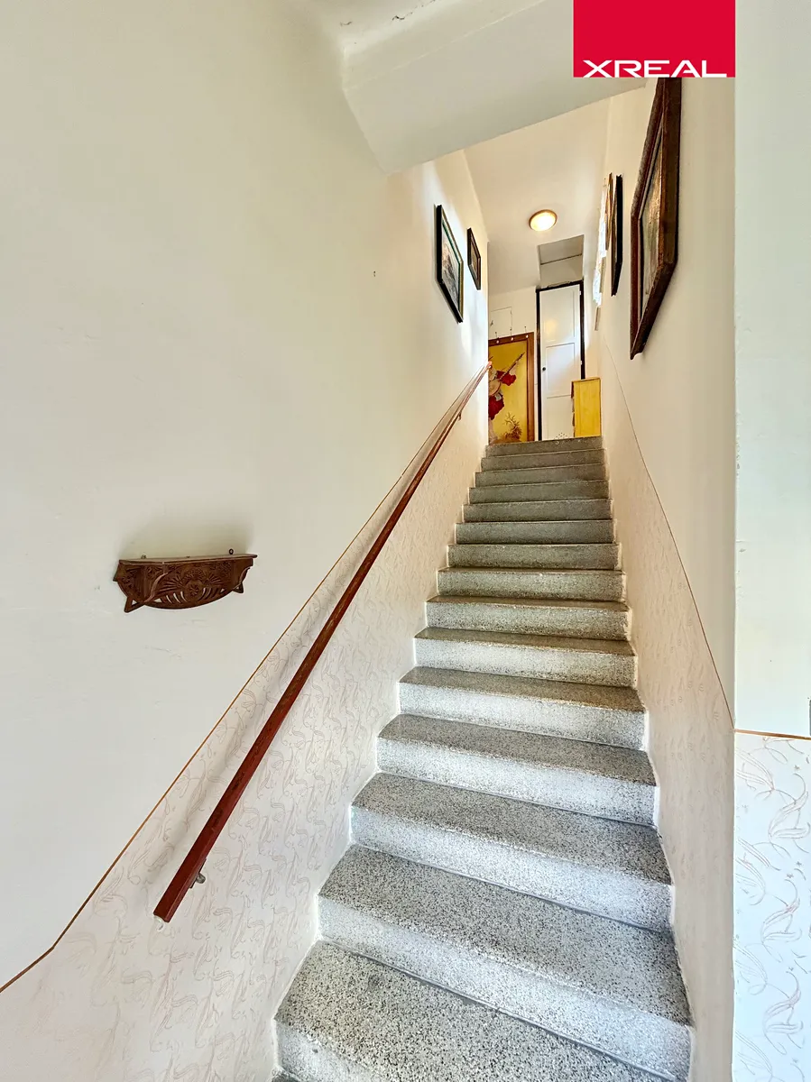 Rodinný dvoupodlažní dům s 2 bytovými jednotkami z roku 1960, na východě navazující na sousední dům. Podlahová plocha domu je 140,7 m2, samostatné zděné garáže 13,4 m2, krytého sezení 13,6 m2 a zahradního skladu 8,0 m2. Oba byty 2+1 mají samostatné vchody ze dvora a koupelnu, samostatné WC, zádveří, spíž, komoru a technickou místnost. Spodní byt je po rekonstrukci, horní v původním dobrém stavu. Oba byty jsou ihned použitelné. Objekt je napojen na veřejný rozvod elektřiny, plynu, vody a kanalizace. Energetická náročnost budovy je třídy G. Dům má centrální vytápění a ohřev vody plynovým kondenzačním kotlem.