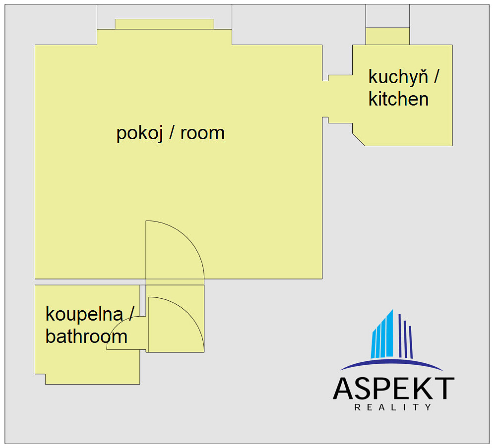 Bytová jednotka sestává z malé předsíně, z níž je možno vstoupit do koupelny (se sprchovým koutem, pračkou a wc) a pokoje, z něhož je možno vstoupit do malé kuchyňky vybavené lednicí, mikrovlnnou troubou a el. dvojplotýnkou. Byt je orientován do vnitrobloku, jedná se tedy o klidné bydlení.