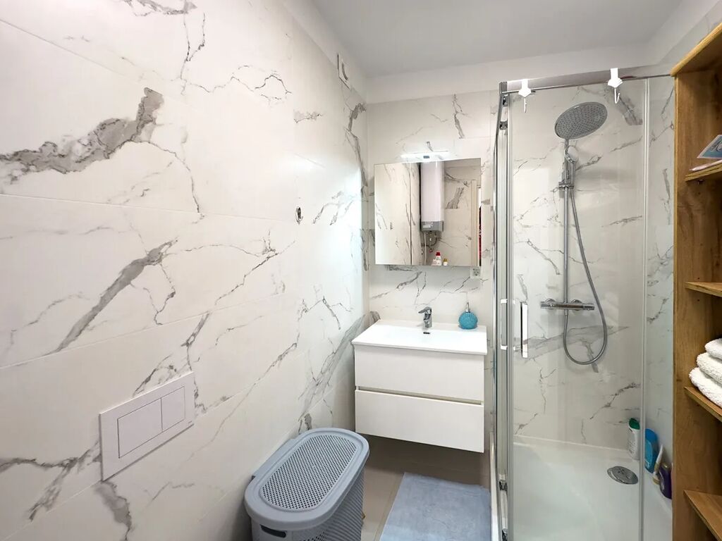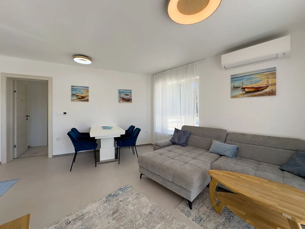 Obývací pokoj a koupelna mají podlahové vytápění, apartmán je klimatizován, moskytiéry jsou na všech oknech, parkovací místo je před budovou.