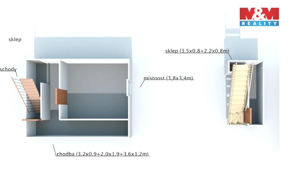 Druhý menší domek je 1+1 s koupelnou, WC, sklepem.