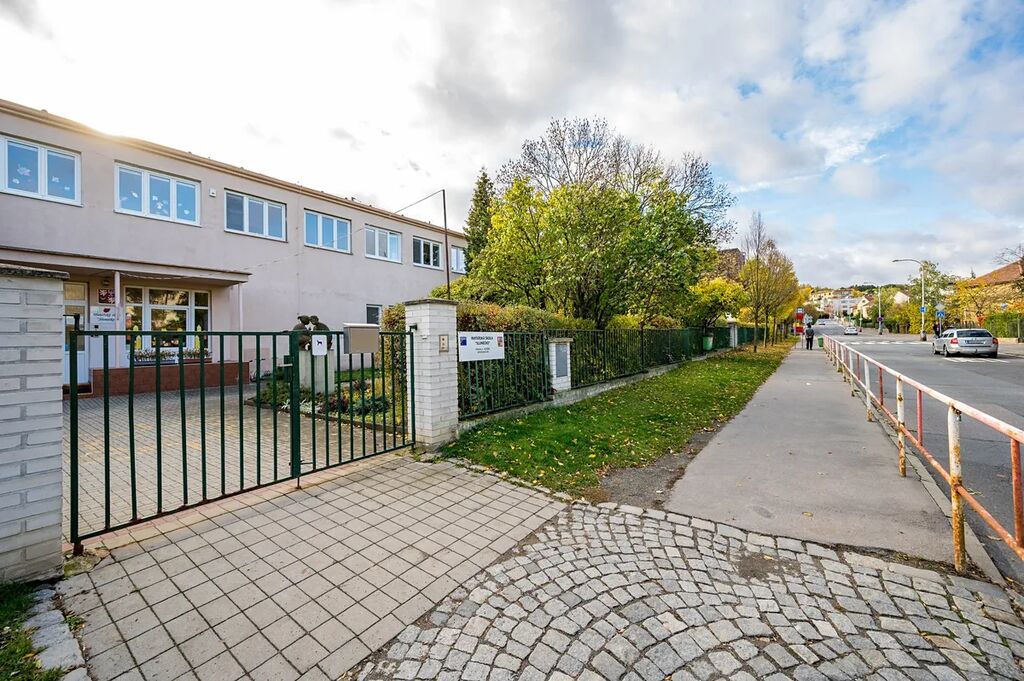 Před domem je udržovaná zahrada, která slouží k relaxaci, dětským hrám či odpočinku ve stínu stromů. Parkování je bezproblémové přímo v ulici. V blízkém okolí se nachází přírodní park Košíře–Motol a lesopark Cibulka, ideální pro procházky, běh, cyklistiku či další volnočasové aktivity. Rodiny ocení bezpečné prostředí a množství venkovních možností.