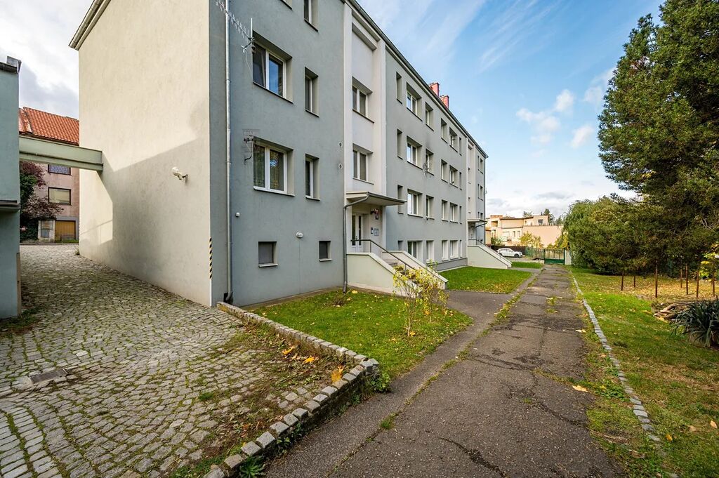 Byt se nachází v přízemí udržovaného cihlového domu z 60. let. Dispozice byla navržena s důrazem na maximální využití prostoru – k dispozici je světlý obývací pokoj s plně vybavenou kuchyňskou linkou, dvě neprůchozí ložnice a koupelna s vanou, umyvadlem a toaletou. Dostatek úložných prostor je samozřejmostí, nechybí sklepní kóje o velikosti 2 m² vhodná například pro sezónní věci.