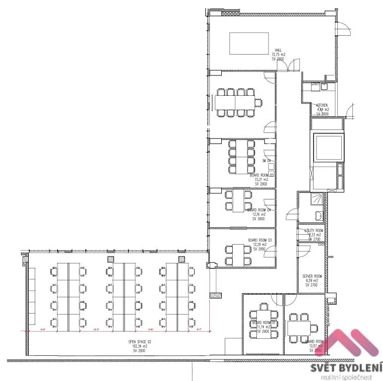 prostory mají centrální vzduchotechniku včetně chlazení.