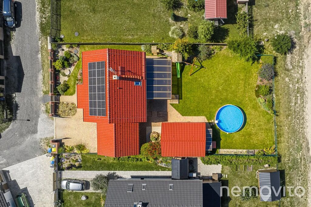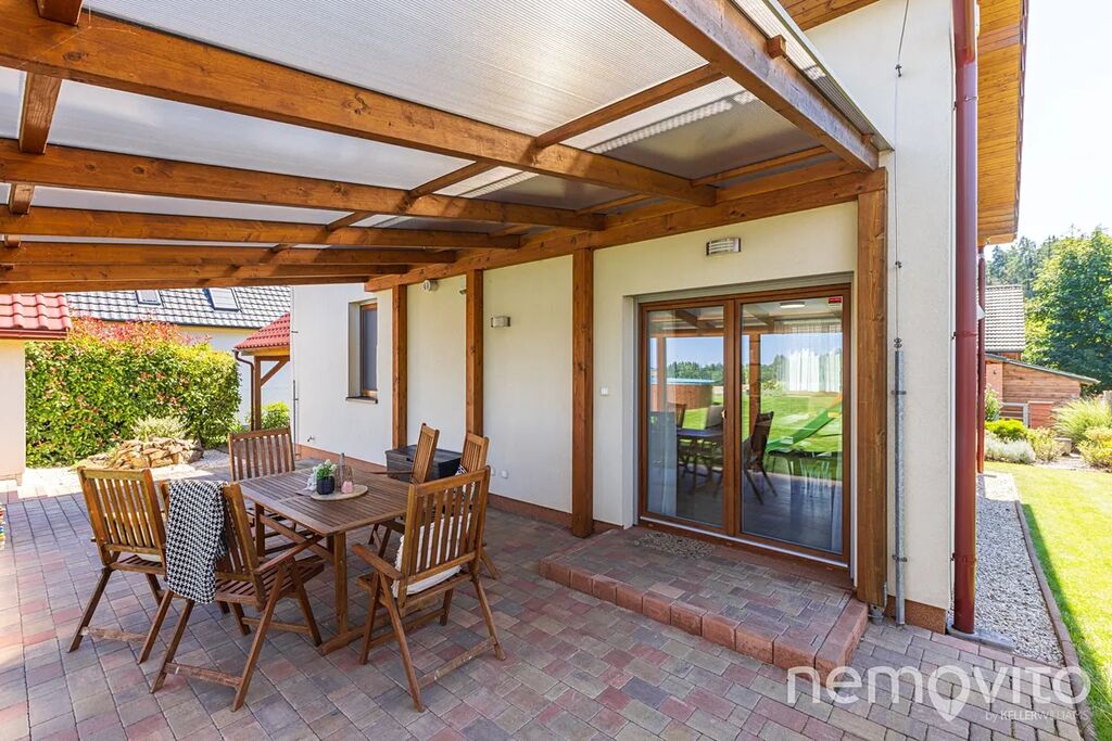 Mimořádně udržovaná dřevostavba (prosinec 2014), která vyniká skutečně nízkými provozními náklady díky nové FVE a kvalitní konstrukci (trojskla, glazovaná taška a další kvalitnější alternativy běžných materiálů). Dům překvapí hromadou úložného prostoru (dvě velké půdy + zahradní domek) a k dispozici má 2 šatny i 2 koupelny. Příjemné je také umístění v lokalitě s několika domy u lesa, nikoliv v klasickém satelitu.