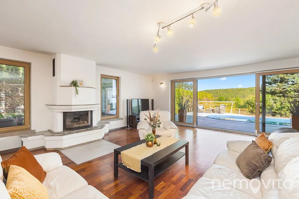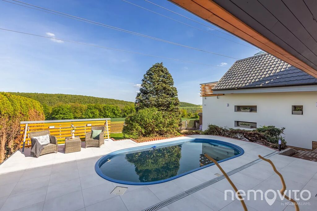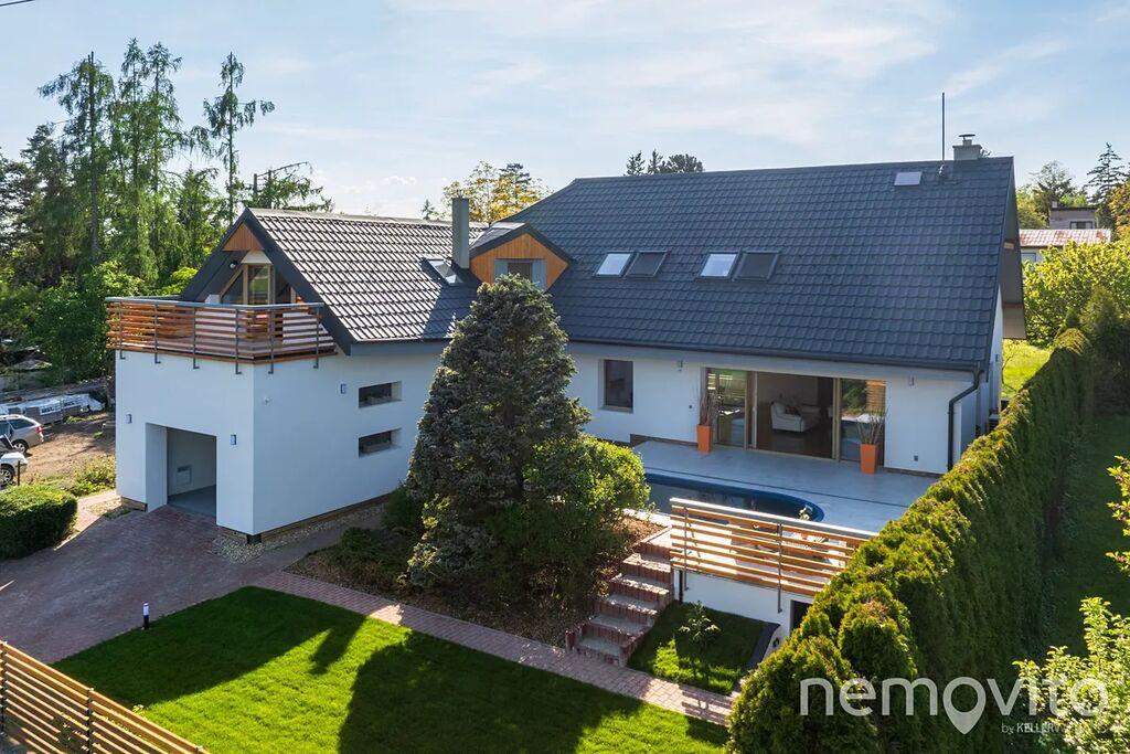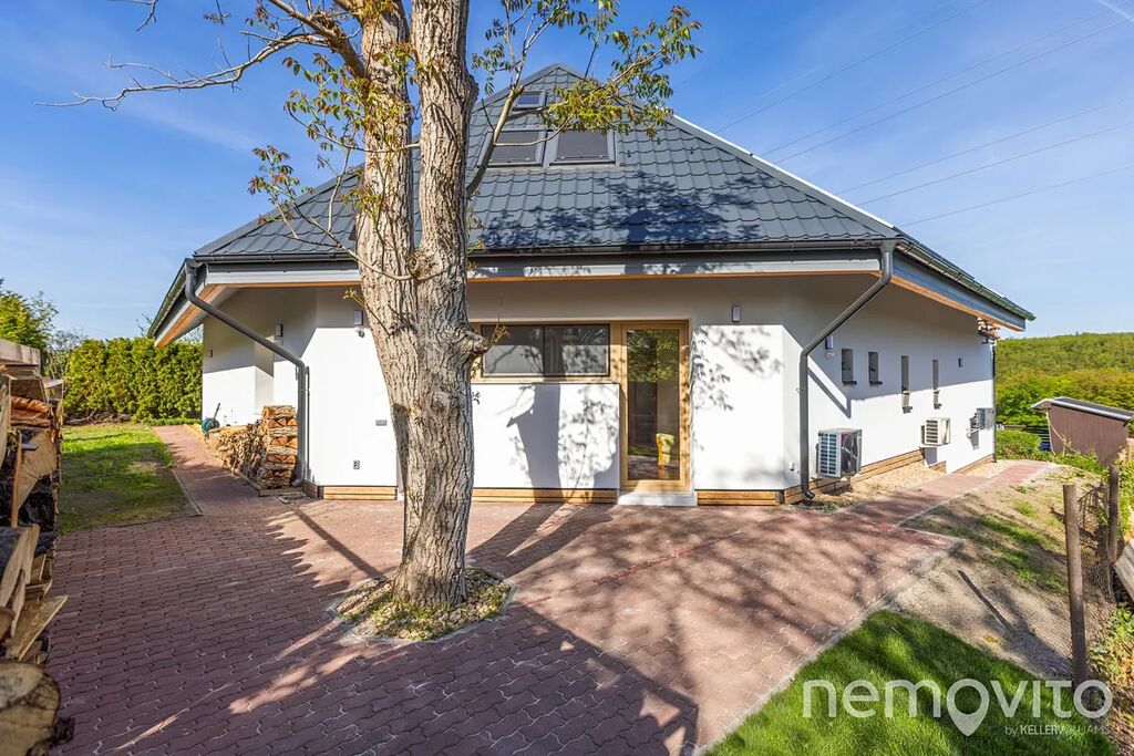 Dům na kraji zástavby s fantastickým výhledem je kolaudovaný v roce 2001. V letech 2024 - 2025 prošel naprosto zásadní rekonstrukcí exteriéru. Nová fasáda se zateplením, nová střecha včetně izolace, trojskla, tepelná čerpadla vzduch-vzduch a FVE o výkonu 10 kWp s baterií 11 kWh. Nově byl upraven také pozemek, který můžete zvolit ve dvou velikostech - 730 a 1.269 m2. Interiér je převážně původní (s výjimkou štuků a koupelen) a je určen k dokončení dle představ a požadavků nového majitele.