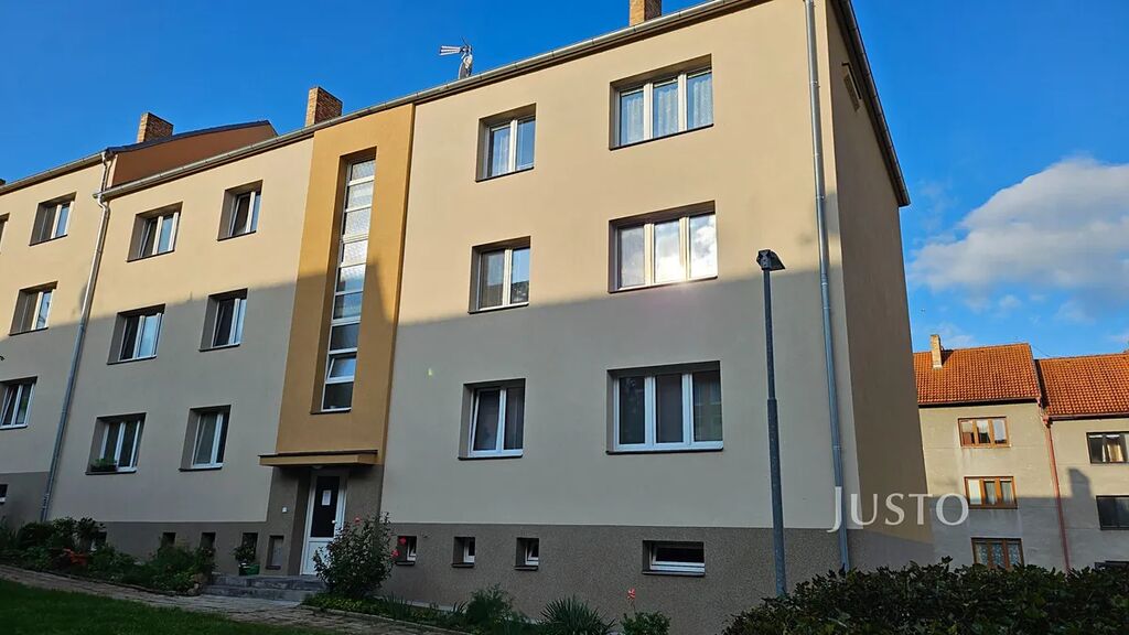 Dispoziční řešení bytu je 3+1 s užitnou plochou 72,5 m², v menším zděném domě bez výtahu.