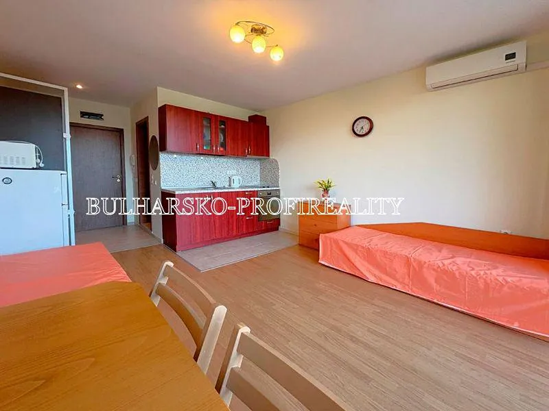 Nabízíme k prodeji zařízené studio o velikosti 40 m s prostorným balkonem a pěkným výhledem na hory a na jeden z bazénů v pečlivě udržovaném rekreačním komplexu, který disponuje několika venkovními bazény. Byt je ideální jako investice i jako dovolenkové bydlení.