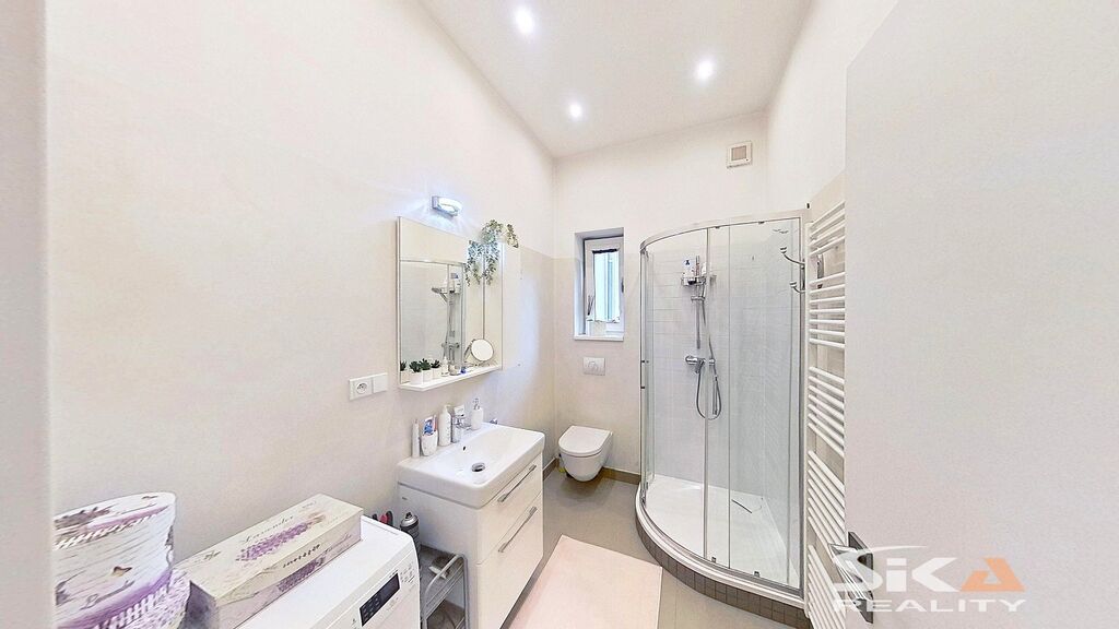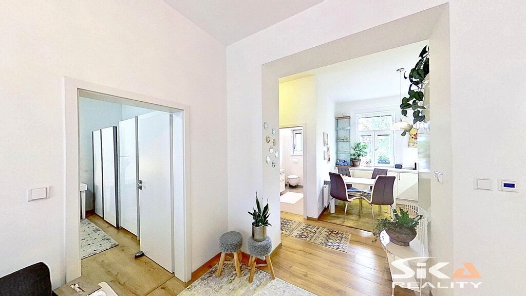 Dům, ve kterém je nabízená bytová jednotka umístěna, prošel v letech 2017 a 2018 rekonstrukcí: nový krov, střešní plášť, klempířské prvky, zateplení pláště domu v severní a západní části, nová fasáda, nová okna, nové vnitřní rozvody IS (voda, odpady, elektrické rozvody), nové topení včetně rozvodů a plynových kotlů (samostatný kombinovaný plynový kotel pro každou bytovou jednotku/každé nadzemní podlaží), nové interiéry a zařizovací předměty domu, rekonstrukce zahradního domku, vybudována pergola, vnější úpravy u domu (dlážděné chodníky, sadové úpravy zahrady)… V průjezdu domu se vyskytla zemní vlhkost, majitel podniká kroky k jejímu odstranění.