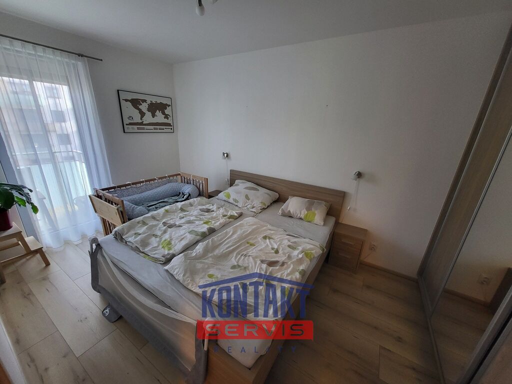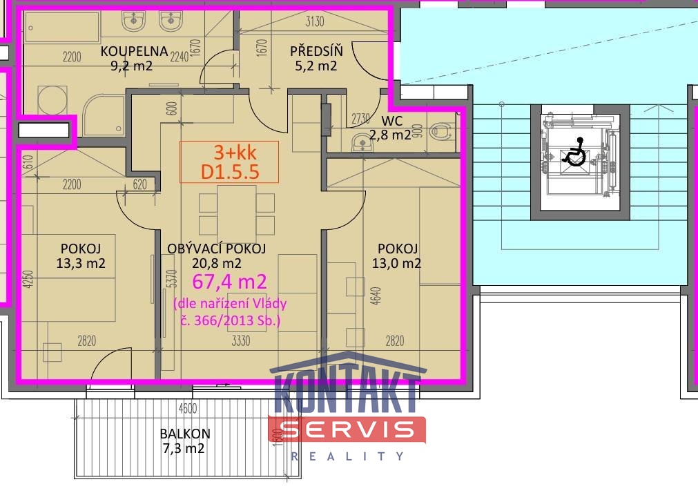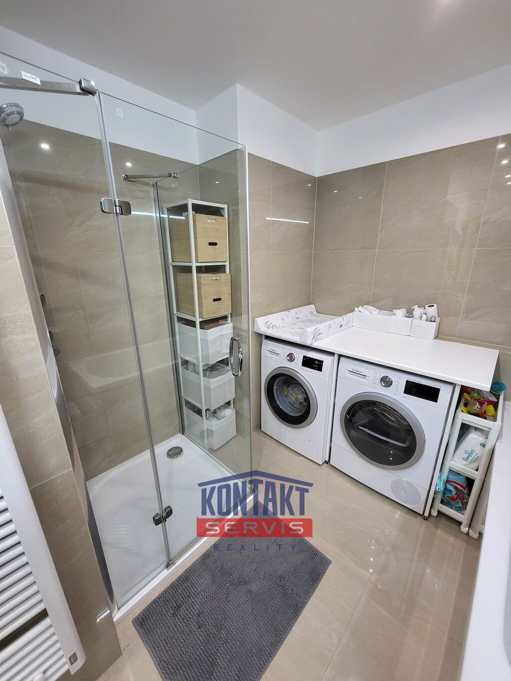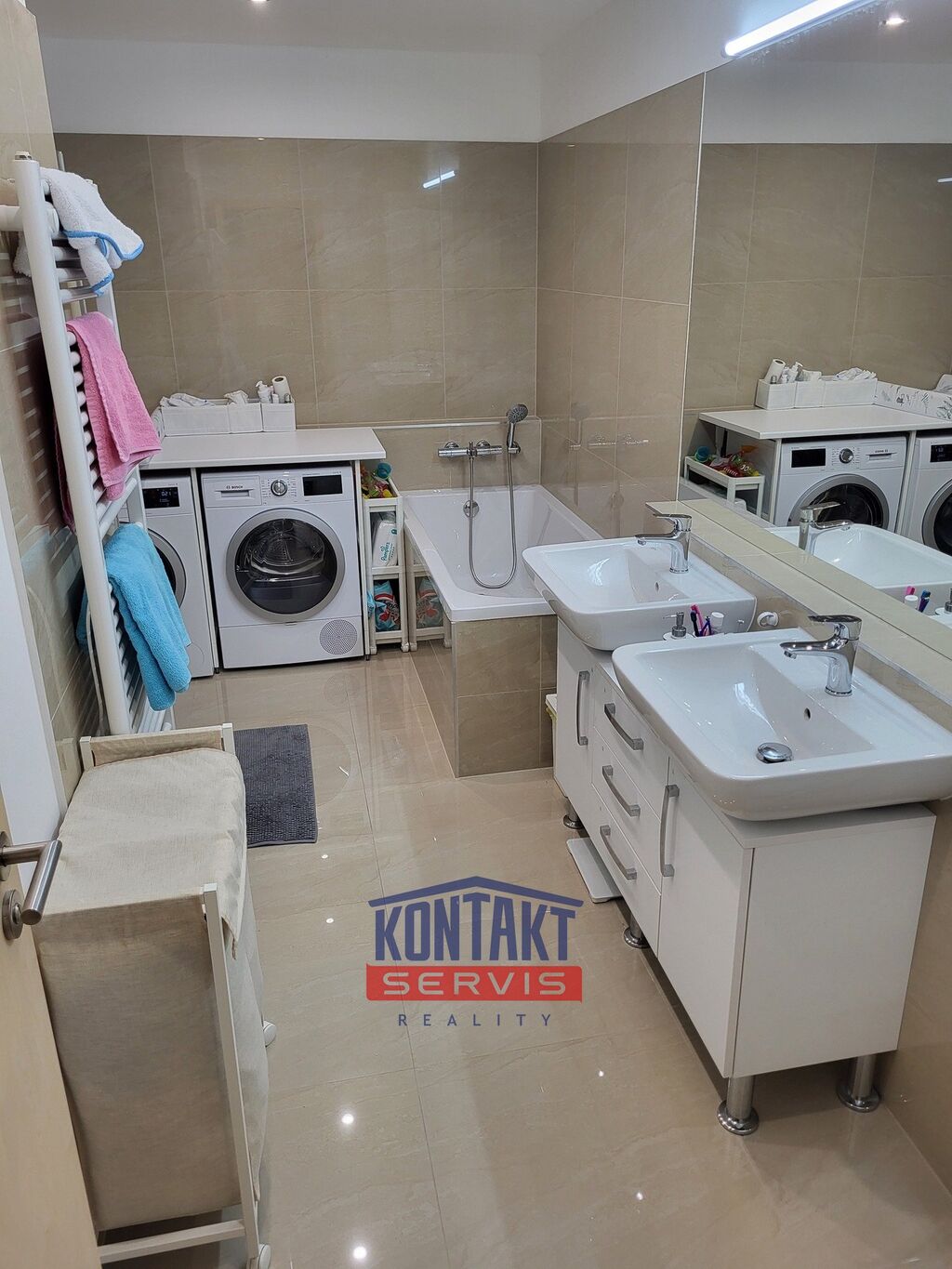 Byt o podlahové ploše 67,4 m² (+ 7,3 m² balkon) nabízí optimální prostor pro pohodlné bydlení. Skládá se z předsíně, koupelny, samostatné toalety, obývacího pokoje s kuchyňským koutem a dvou neprůchozích pokojů. Všechny místnosti jsou pečlivě navrženy a vybaveny nábytkem na míru, včetně prodloužené manželské postele (210 cm) v ložnici a kuchyňské linky se spotřebiči značky Bosch. Koupelna je vybavena jak vanou, tak samostatným sprchovým koutem, pračkou i sušičkou pro maximální pohodlí. Balkon je přístupný jak z obývacího pokoje, tak z ložnice.