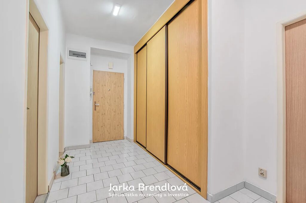 Praktické dispoziční řešení bytu zajišťuje dostatek prostoru pro pohodlné bydlení. Zahrnuje předsíň se zabudovanými vestavěnými skříněmi a samostatnou komoru, kterou můžete využít jako další úložný prostor. Z chodby vstoupíte do neprůchozího pokoje a dále do prostorného obývacího pokoje, který je propojen s kuchyní. Byt disponuje koupelnou s vanou a samostatnou toaletou.