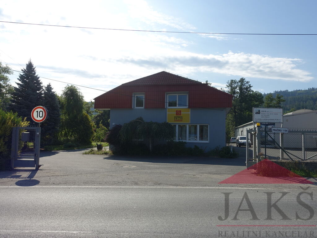 Nabízíme do pronájmu skladovací halu (užit. pl.: 182 m2) s prodejnou/kanceláří (užit. pl.: 35,9 m2) se sociálním zázemím a zpevněnou manipulační plochou vč. vlastního parkoviště, stojící v ul. Pražská v Sušici (výjezd směr Horažďovice, Strakonice).
