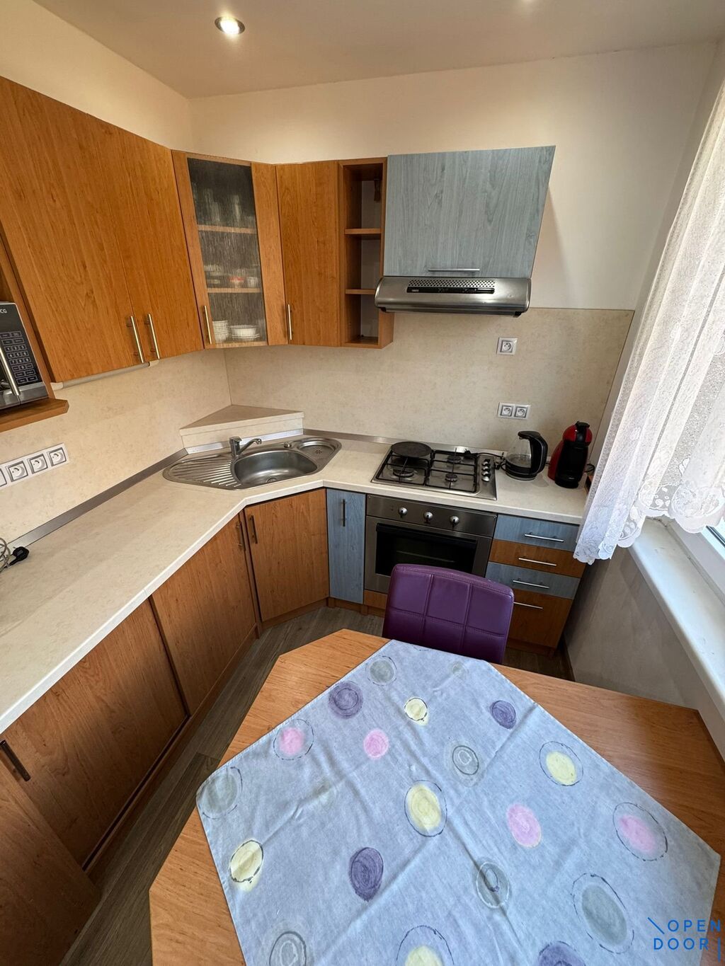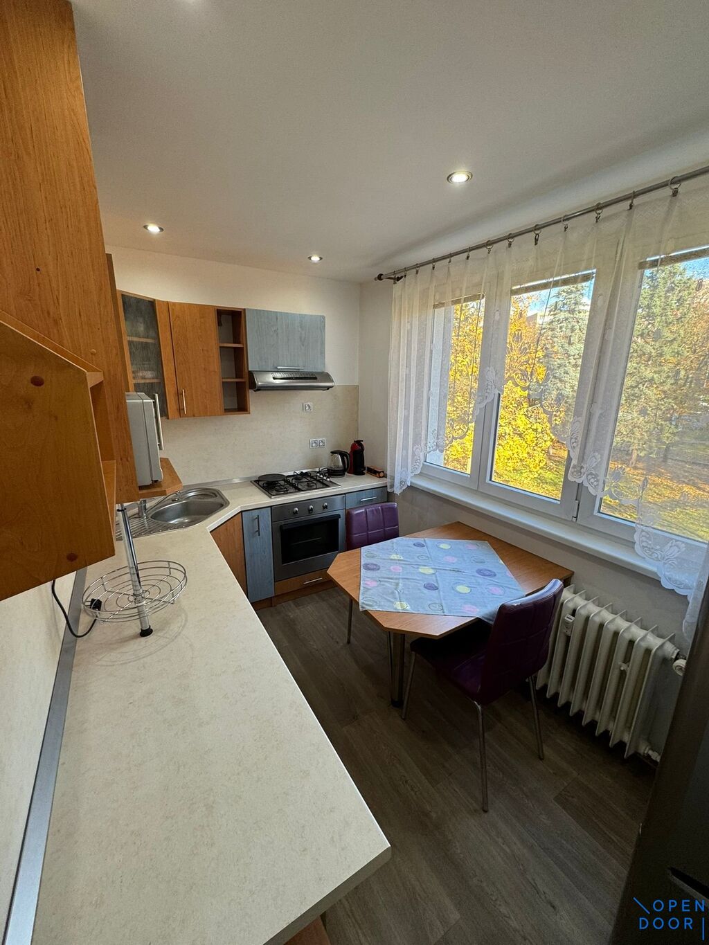 Byt se skládá z koupelny, dále z předsíně, kuchyně s kuch. koutem a dvou samostatných pokojů. Byt se nabízí jako kompletně vybavený.