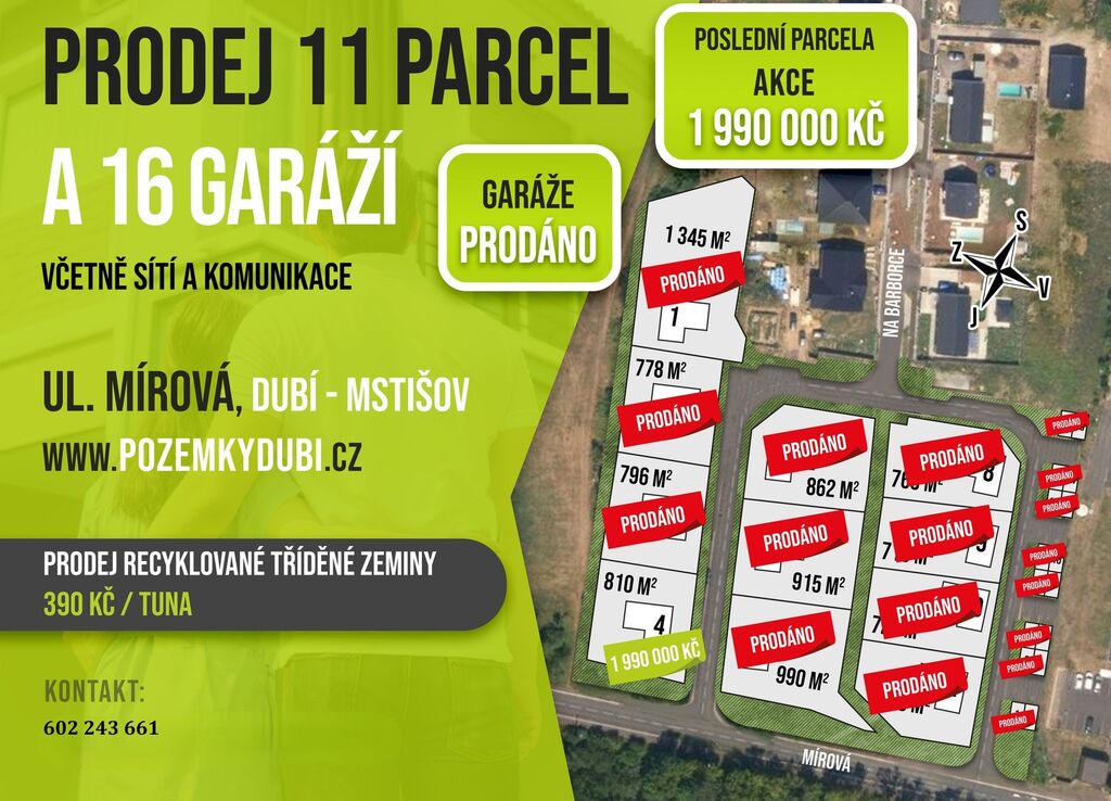 Prodej posledního pozemku v Dubí- Mstišov za zlevněnou cenu z 2 150 000,- Kč na Na 1 950 000,- Kč.