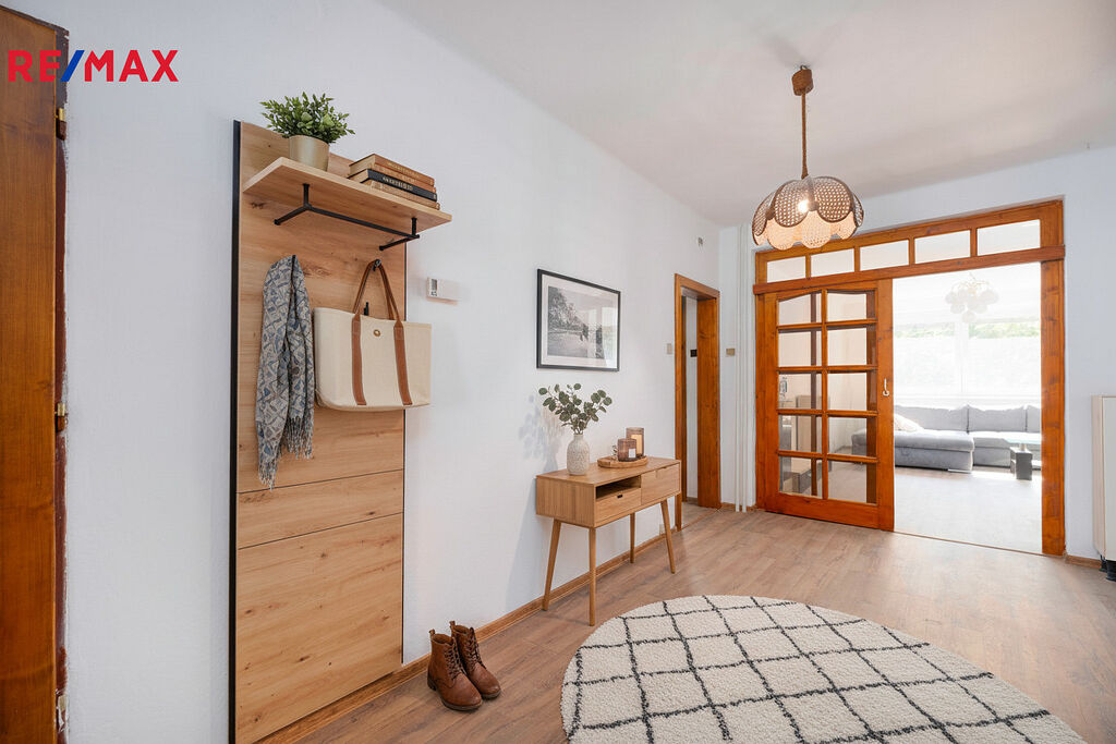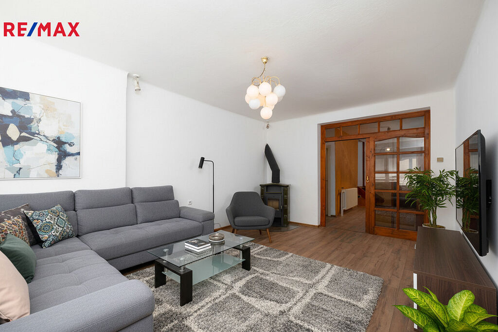 Dům má za sebou důležité rekonstrukce exteriéru – novou střechu, zateplenou fasádu i zrekonstruovaný balkon a vstup. Díky tomu působí upraveně a majitelé se částečně zaměřili i na interiér: ve většině místností jsou nové podlahy a v přízemí byla modernizována kuchyně. Dům je navíc celý podsklepen, což přináší spoustu praktického úložného prostoru.