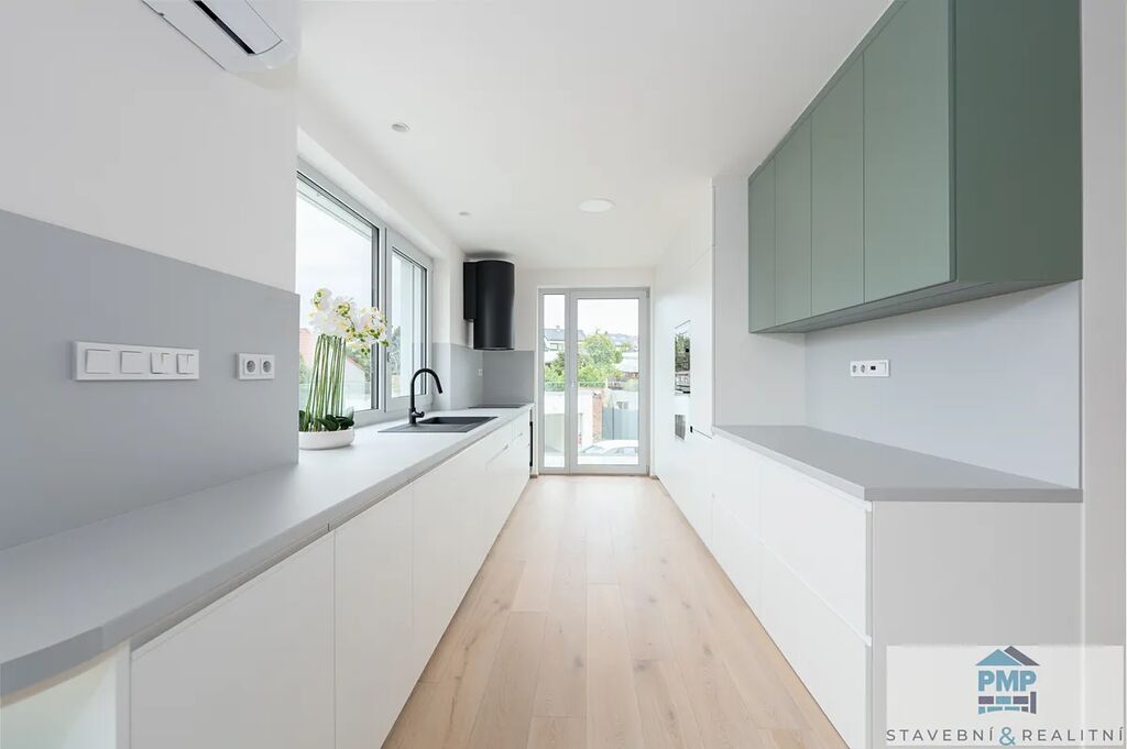 Byt je vybaven klimatizačním systémem Dražice v každé obytné místnosti, takže Vám zajistí příjemnou teplotu po celý rok. O tepelný komfort se stará podlahové teplovodní vytápění napojené na centrální tepelné čerpadlo NIBE vzduch–voda. Kvalitu interiéru podtrhují dubové lepené podlahy, hliníková okna s trojsklem a předokenní žaluzie na elektrický pohon. Samozřejmostí je centrální vysavač pro snadný úklid, příprava na fotovoltaickou elektrárnu a využívání dešťové vody, garáž s přípojkou na wallbox pro elektromobil a také příprava na optický internet. Tento byt tak představuje dokonalou kombinaci komfortu, elegance a moderních technologií.