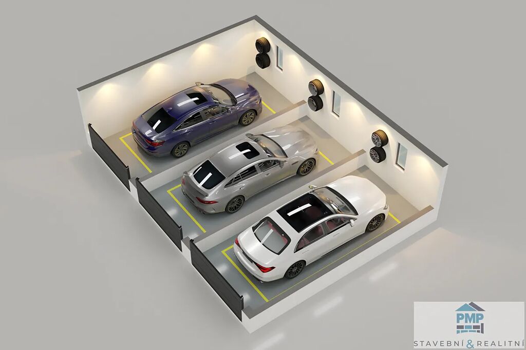 K bytu náleží také garáž s nadstandardní hloubkou 7 metrů a vlastní venkovní parkovací stání, což Vám poskytne komfortní a bezpečné parkování.