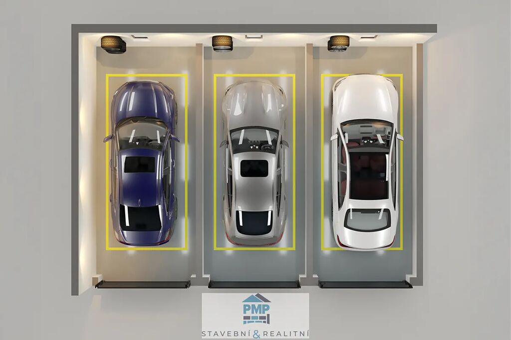 Součástí bytu je také garáž s nadstandardní hloubkou 7 metrů a průjezdní výškou vrat přes 2 metry, která je vhodná i pro větší vůz či motocykl. Navíc k bytu patří i vlastní venkovní parkovací stání.