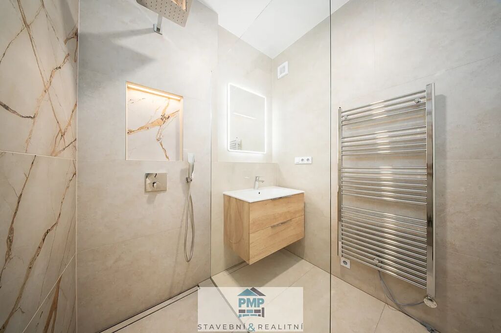 Mezi hlavní přednosti patří moderní koupelna se sprchovou zástěnou walk-in a LED osvětlením, centrální vysavač v bytě pro pohodlný úklid, příprava na fotovoltaickou elektrárnu i využívání dešťové vody a také garáž s přípojkou pro wallbox pro elektromobil či plug-in hybrid. Oceníte rovněž přípravu na optický internet, která vám do budoucna zajistí rychlé a spolehlivé připojení. Tento byt tak nabízí vysoký komfort a připravenost na moderní životní styl.