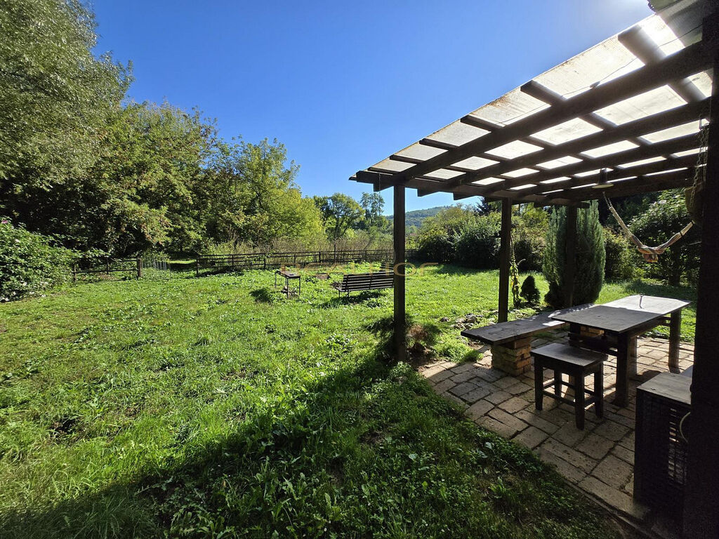 Na chatu navazuje pěkná pergola s posezením, dále je zde udírna a kotlina na venkovní vaření.