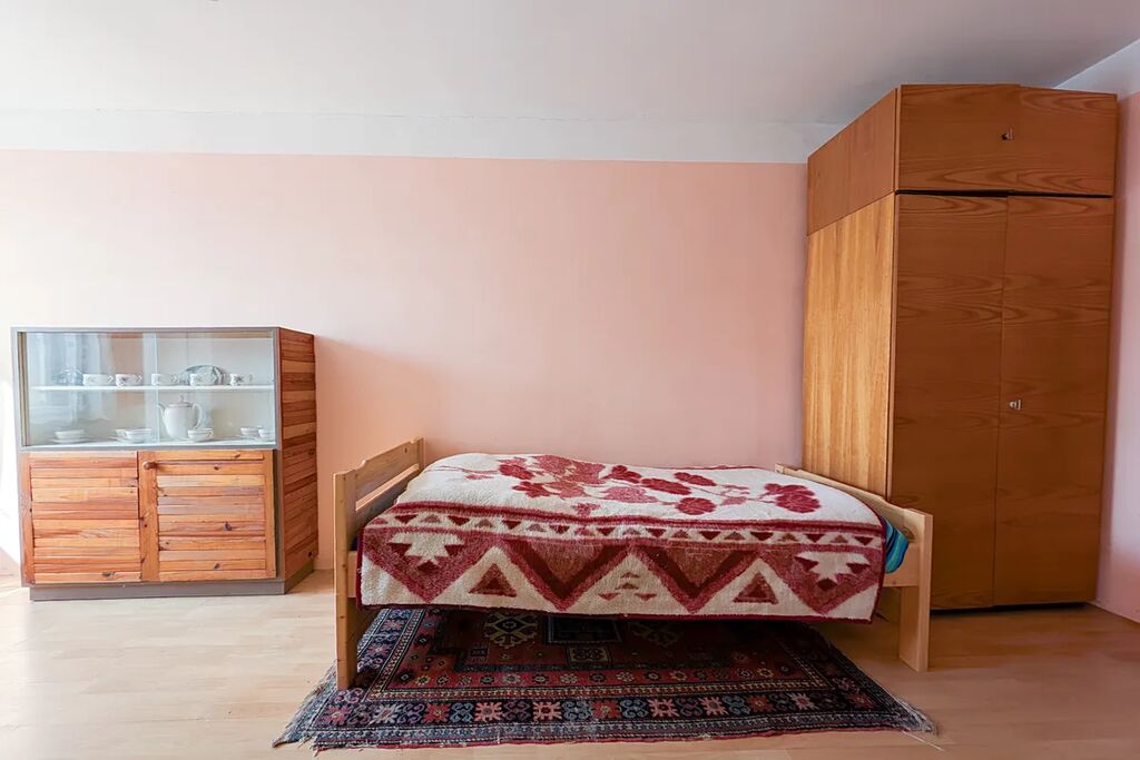 / Tři místnosti s okny do klidné ulice – pokoj, kuchyně s kuchyňskou linkou i jídelním koutem a obývací pokoj.