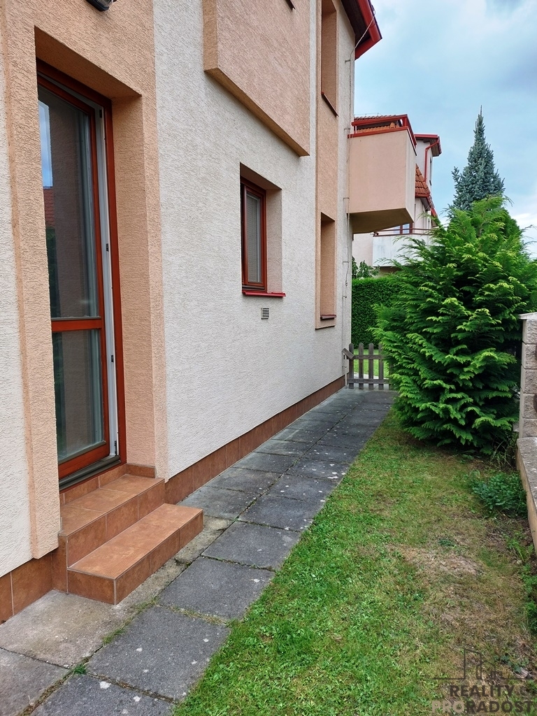 Zprostředkujeme pronájem velmi hezkého bytu 1+kk, o velikosti 30, 83m2 s předzahrádkou 35m2, nám. Svobody, Úvaly u Prahy. Byt je v 1 NP. s přímým vstupem bočními dveřmi na oplocenou předzahrádku, která patří k domu a je využívána pouze tímto bytem. Cihlový zateplený dům z roku 2006 je třípatrový bez výtahu s 5 bytovými jednotkami. Plastová okna, na podlaze dlažba. Byt se skládá ze zádveří s botníkem (lze umístit další šatní skříň), koupelny s rohovou vanou, otopným žebříkem, umyvadlem a WC. V koupelně umístěn plynový kotel na vytápění a bojler na ohřev vody. Obývací pokoj je spojen s kuchyní, která je oddělená barovým jídelním pultem se 4 židlemi. V obývací části konferenční a TV stolek, 2 matrace, velký úložný prostor ve vestavěné skříni se zrcadly. Kuchyňská linka vybavena lednicí s mrazákem, pračkou, el. varnou deskou a troubou, digestoří, nerez dřezem. Myčka není v současné době plně funkční. Sklep není k dispozici. Základní měsíční nájem 14 000,- + domovní poplatky včetně spotřeby vody, elektřiny a plynu činí 4 000,- měsíčně/ 1os., 2 osoby 5 000,- Kč, a budou nájemcem hrazeny měsíčně spolu se základním nájmem. Internet a pojištění bytu si hradí nájemce na své jméno. Celkem nájem 18 000,- Kč , provize 14 000,- Kč, vratná kauce 25 000,- Kč. Byt volný ihned, prohlídky po domluvě. Do doby dodání energetického štítku uvádíme třidu G. Byt se nachází v klidné rezidenční části Úval, v okolí rodinné domy, totožné bytové domy a dům s pečovatelskou službou včetně domova seniorů. V Úvalech dobrá občanská vybavenost, lékař, pošta, základní a mateřská škola, obchody, nákupní centrum Pražská, stanice nádraží v docházkové vzdálenosti. Moderní vlaky jezdí každých 15 - 30 min. Přímý spoj na Prahu Hlavní a Masarykovo nádraží vlakem cca 30 min. bez přestupu, autem, nebo autobusy Pražskou integrovanou dopravou k metru Černý most. Parkování před domem bez rezidenčních zón. V okolí zeleň, les, sportoviště, možnost relaxace v přírodě, přesto blízko u Prahy.