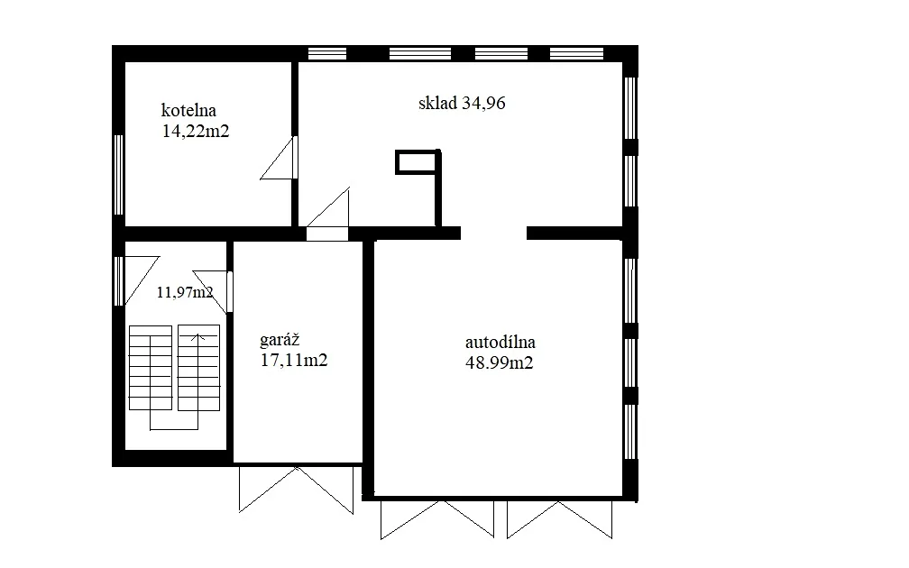 V 1 nadzemním podlaží se nachází kromě vstupní chodby se schodištěm, kotelna, sklad , garáž a dále prostorná autodílna s montážní jámou.