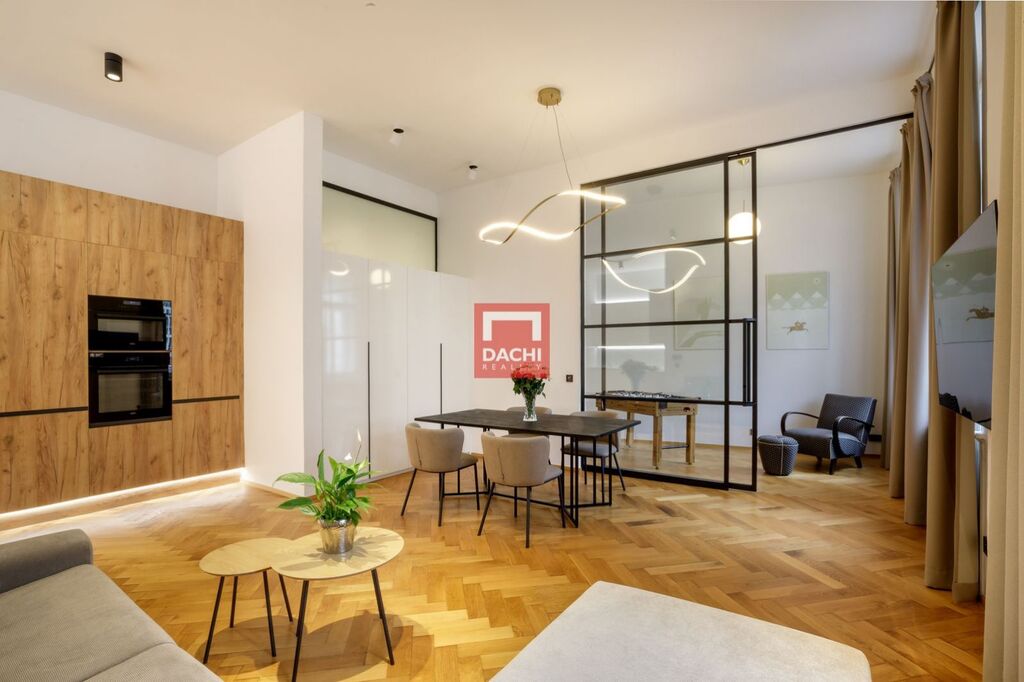 Nabízíme k pronájmu výjimečný byt o dispozici 4+kk a celkové výměře 93 m, který se nachází ve 4. patře udržovaného cihlového domu s výtahem (do mezipatra) v samém srdci Prahy na prestižní adrese ve Vodičkově ulici. Byt prošel kompletní nadstandardní rekonstrukcí s důrazem na kvalitu, design a funkčnost.
