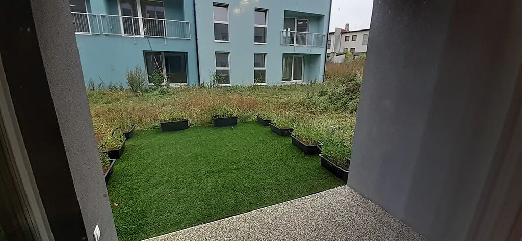 K bytu náleží krytá terasa o rozloze cca 4 m2 a malá předzahrádka, která teprve čeká na své osázení – to už může být zcela na Vás – zda si zvolíte vonný keř nebo nádobu s letničkami – v každém případě zde bude příjemné posezení s šálkem kávy nebo skleničkou dobrého vína.