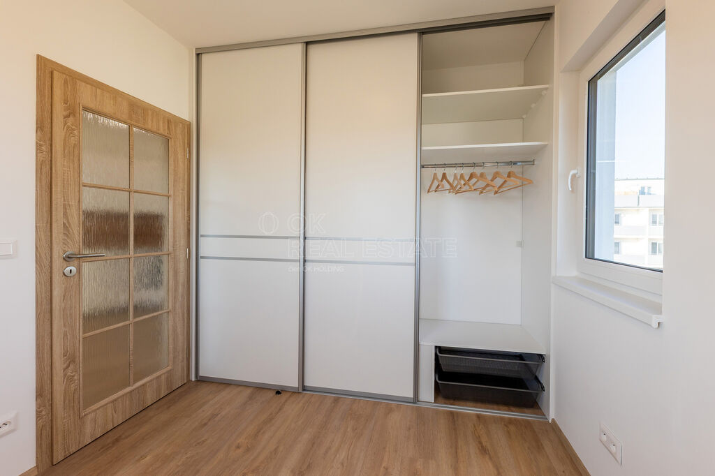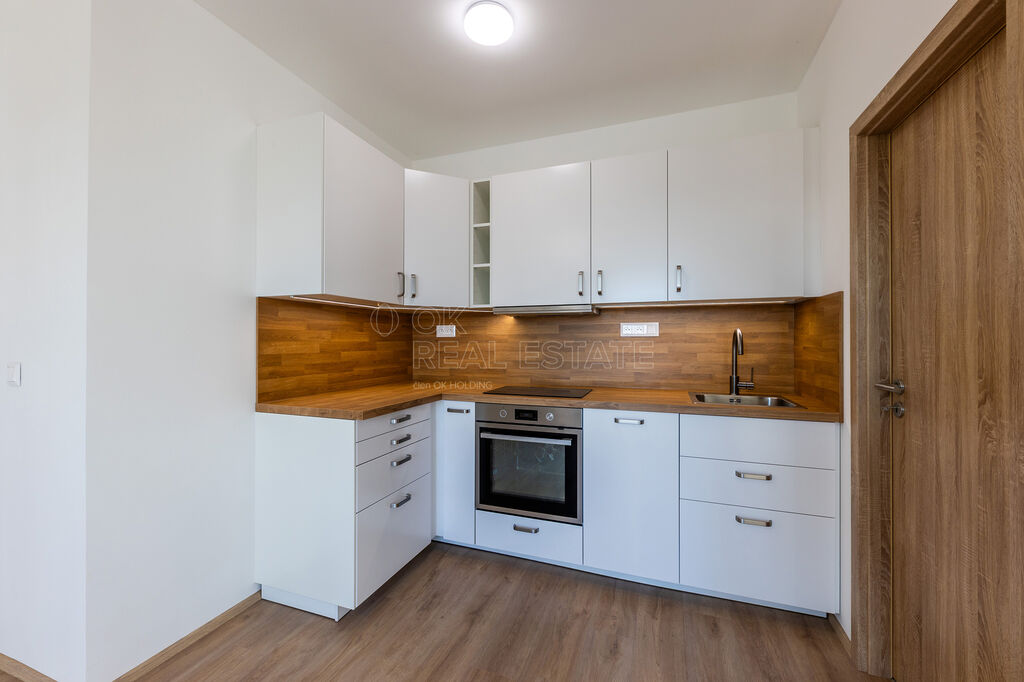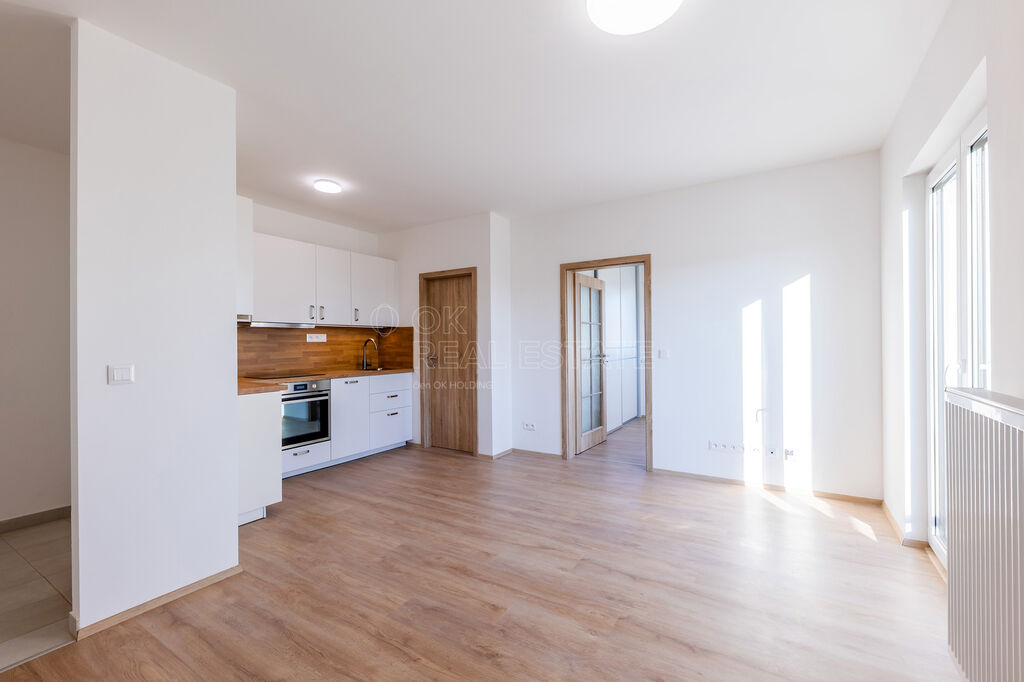 V bytě o podlahové ploše 36 m2 se nachází obývací pokoj s moderně zařízenou kuchyňskou linkou, obývací pokoj, ložnice s velkou vestavěnou skříní, koupelna se sprchovým koutem, WC a umyvadlem s galerií a předsíň. K bytu dále náleží balkón o ploše 4 m2 s krásným výhledem do přírody, sklep v 1. nadzemním podlaží a parkovací stání přímo u domu za příplatek 1.OOO Kč měsíčně.