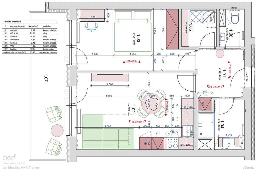 Byt je k dispozici IHNED a je vybavený. Byt je určen maximálně pro 2 dospělé osoby.