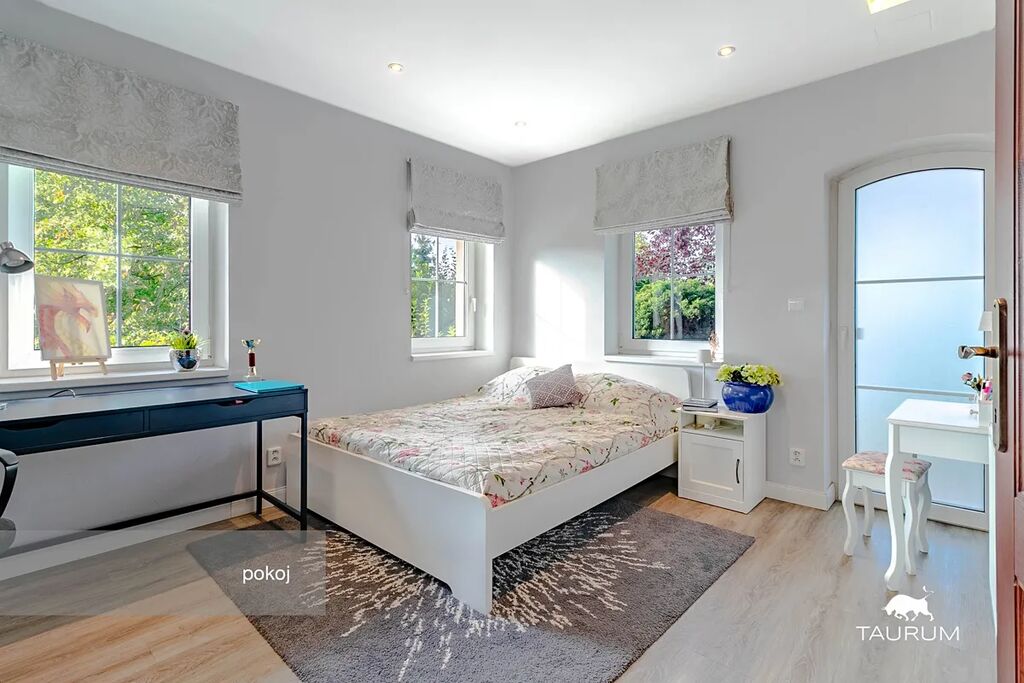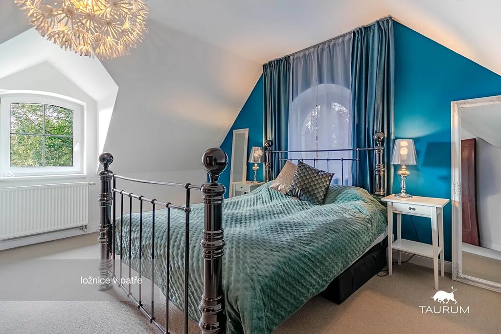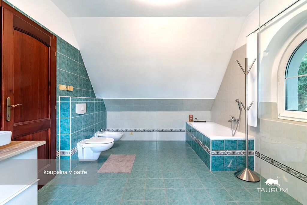 Ve druhém podlaží je velká ložnice, pracovna s balkonem, skladovací komory a místnosti a velká koupelna s toaletou, vanou a sprchovým koutem.