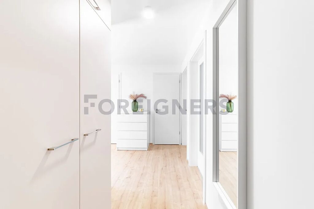 Prostorná chodba s nábytkem na míru, včetně praktické a dobře promyšlené šatny, která nabízí maximální úložný prostor.