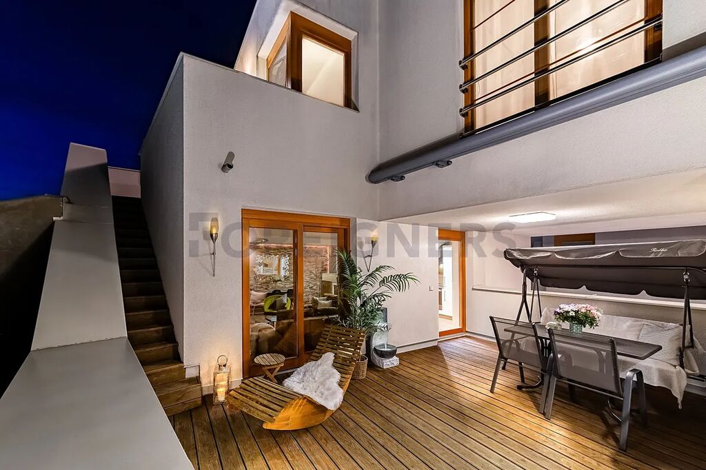 Nabízíme vám atypický byt o dispozici 4+kk a celkové ploše 176,7 m2, vč. parkingu a 1/9 spoluvlastnického podílu na pozemku o vel. 771 m2. Tento byt, který se svojí architekturou vyrovnává zahraničním standardům, je ideální volbou pro ty, kteří hledají kvalitní a pohodlné bydlení.