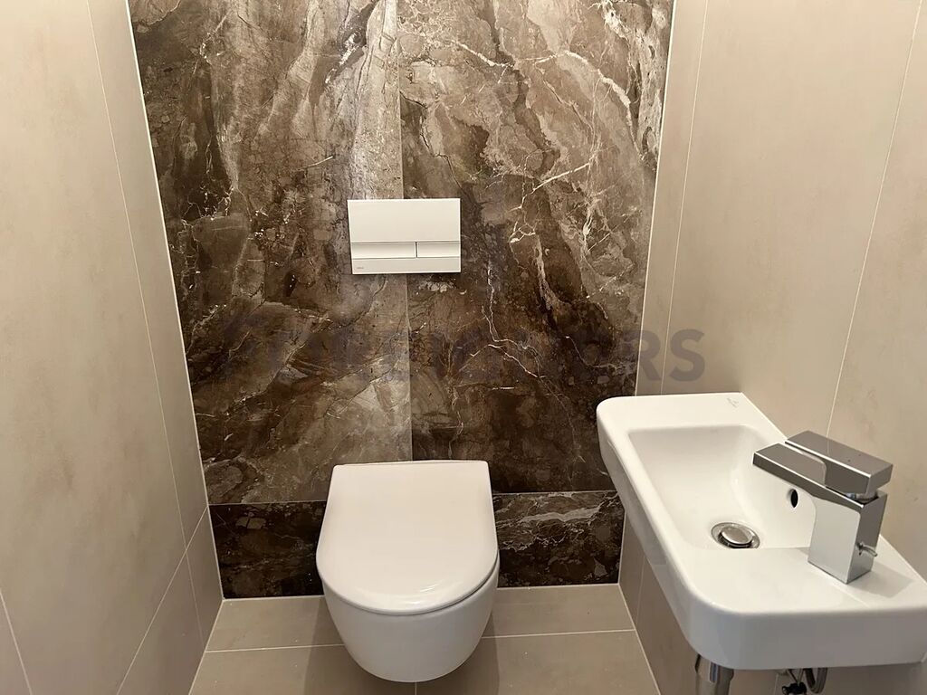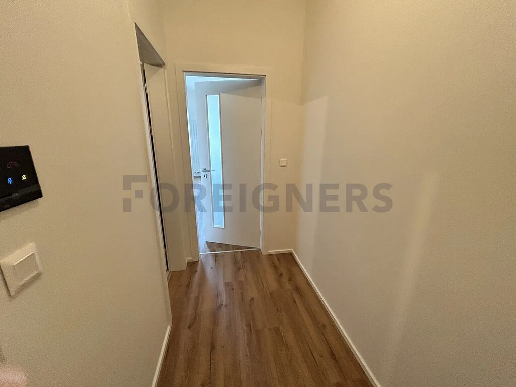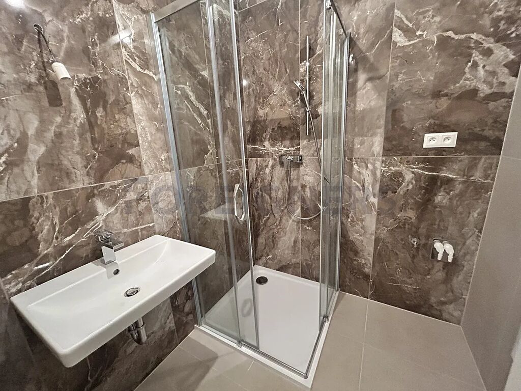 Po vstupu do bytu se nachází chodba, odkud je vstup do koupelny vybavené sprchovým koutem, umyvadlem se skříňkou, zrcadlem, toaletou a místem pro pračku se sušičkou.