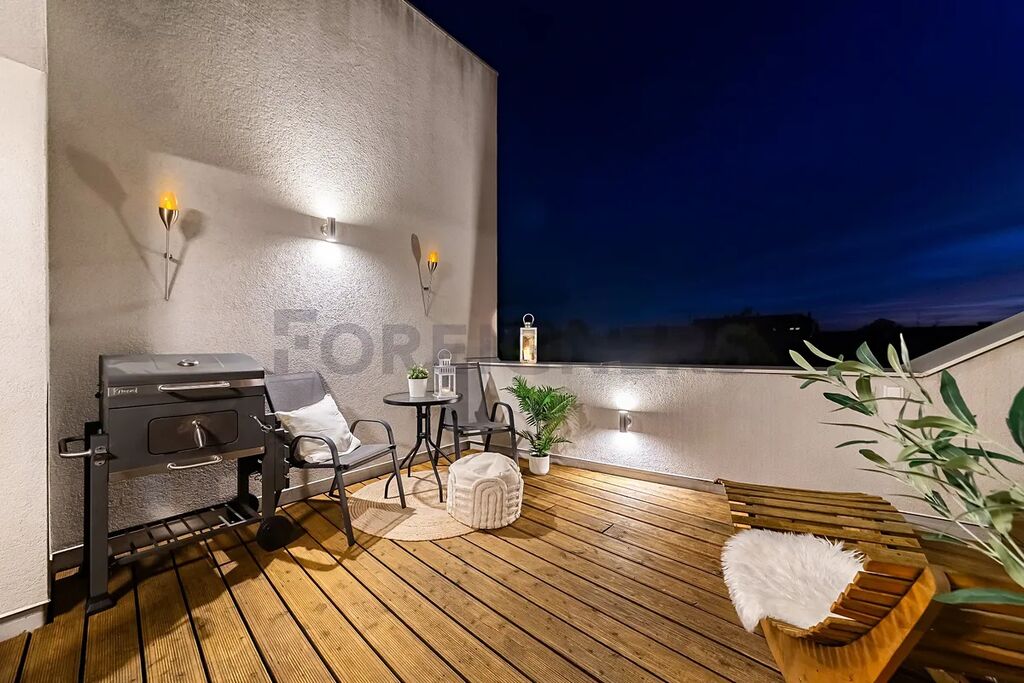 Tento dům nabízí celkem tři terasy, sklad a dvě zastřešená parkovací místa před domem. Celý projekt je oplocený a zahrnuje sdílenou zahradu. Náklady o údržbu si dělí všichni členové SVJ.