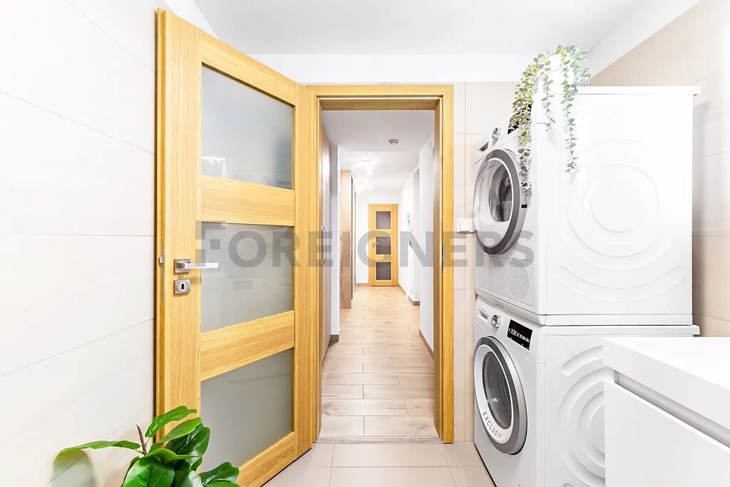 Při vstupu do domu vás přivítá prostorná chodba s vestavěnou šatní skříní, která poskytuje dostatek úložného prostoru. Přízemí nabízí útulnou pracovnu s prosvětleným francouzským oknem a přístupem na jednu z teras. Dále je zde koupelna a technická místnost.