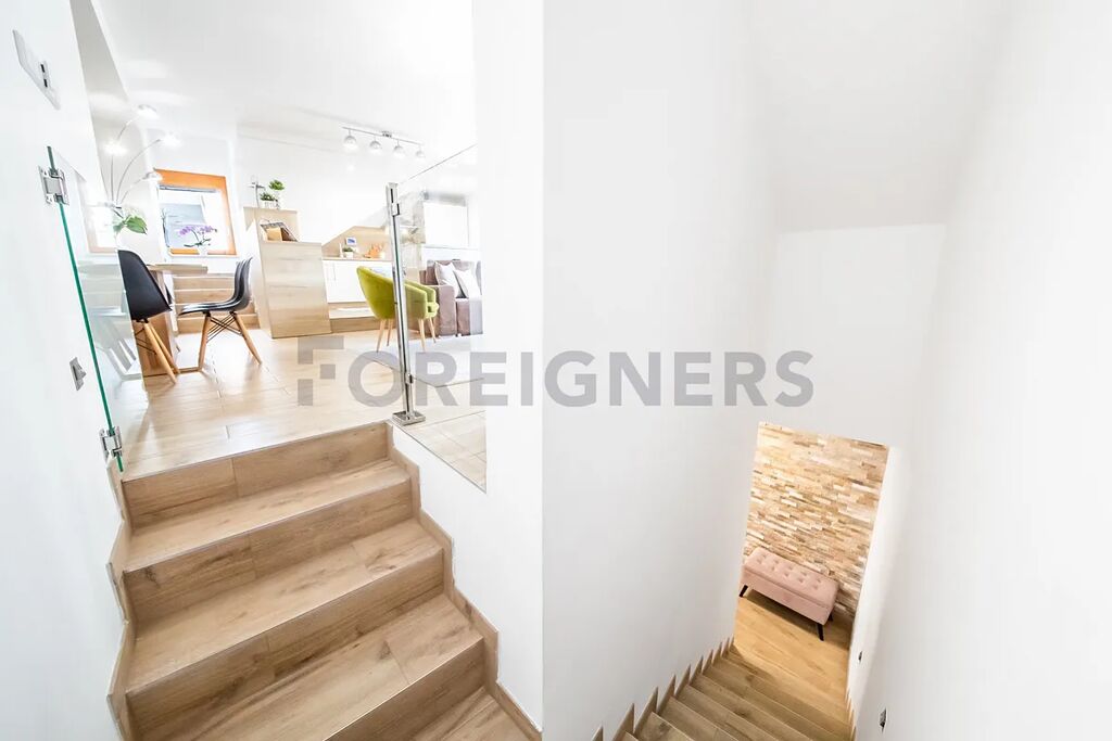 Nabízíme vám atypický dům o dispozici 4+kk a celkové ploše 176,7 m2, vč. parkingu a 1/9 spoluvlastnického podílu na pozemku o vel. 771 m2. Tento dům, který se svojí architekturou vyrovnává zahraničním standardům, je ideální volbou pro ty, kteří hledají kvalitní a pohodlné bydlení.